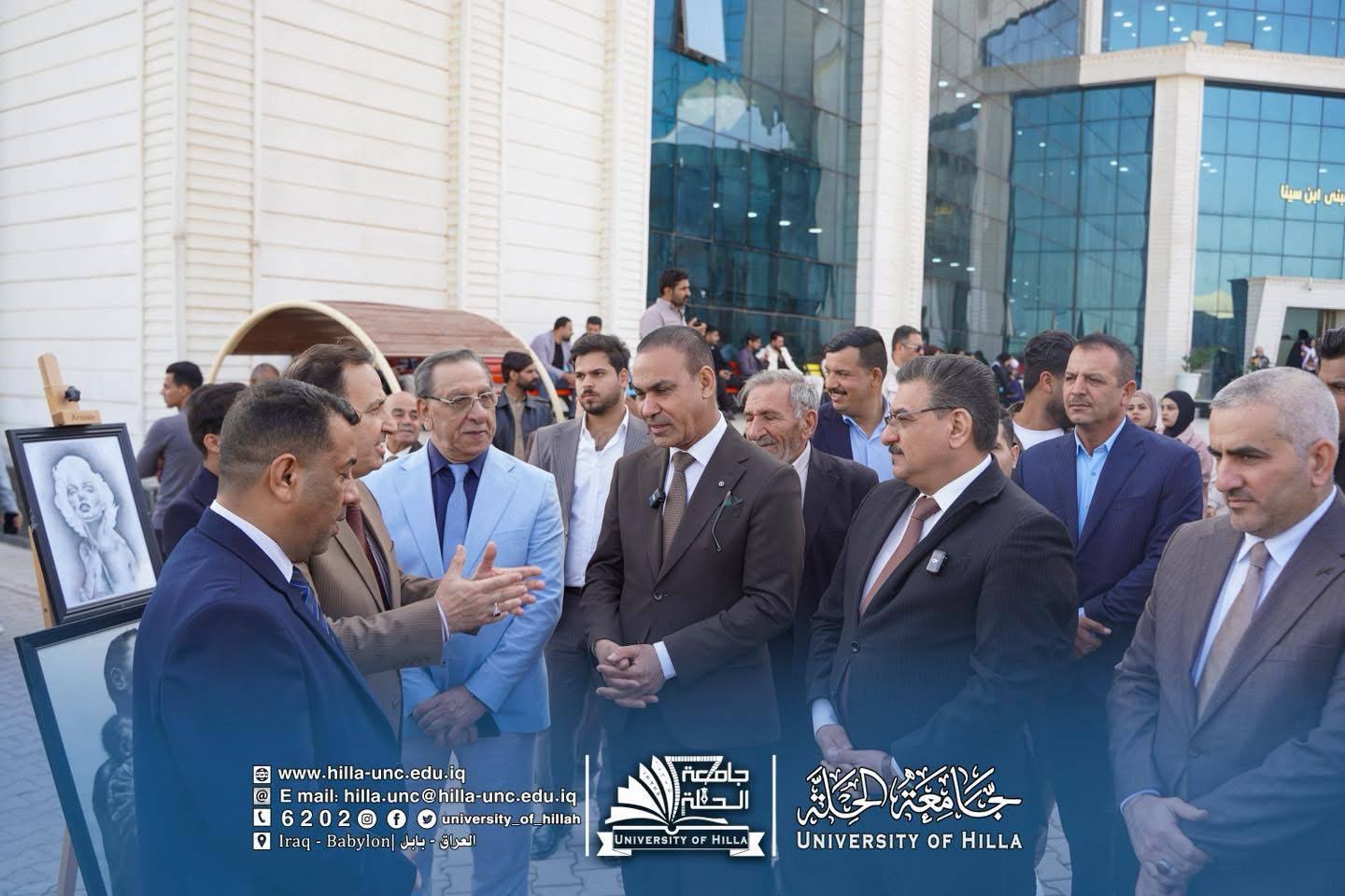 وحضر حفل الافتتاح رئيس جامعة الحلة الأستاذ الدكتور عقيل السعدي، ورئيس مجلس محافظة بابل الأستاذ أسعد المسلماوي، وعميد كلية الفنون الجميلة الاستاذ الدكتور علي الربيعي، والمعاون العلمي المدرس المساعد حوراء إسماعيل، إلى جانب عدد من التدريسيين والطلبة والمهتمين بالفنون.