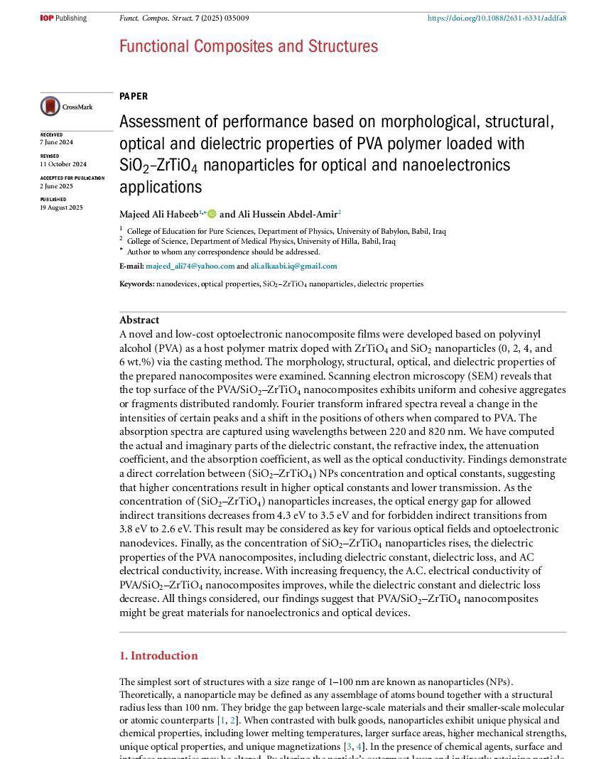 وجرى نشر البحث في مجلة Functional Composites and Structures الصادرة عن دار النشر العالمية IOP Publishing، والمصنفة ضمن الربع الثاني (Q2) في مستوعبات سكوبس.