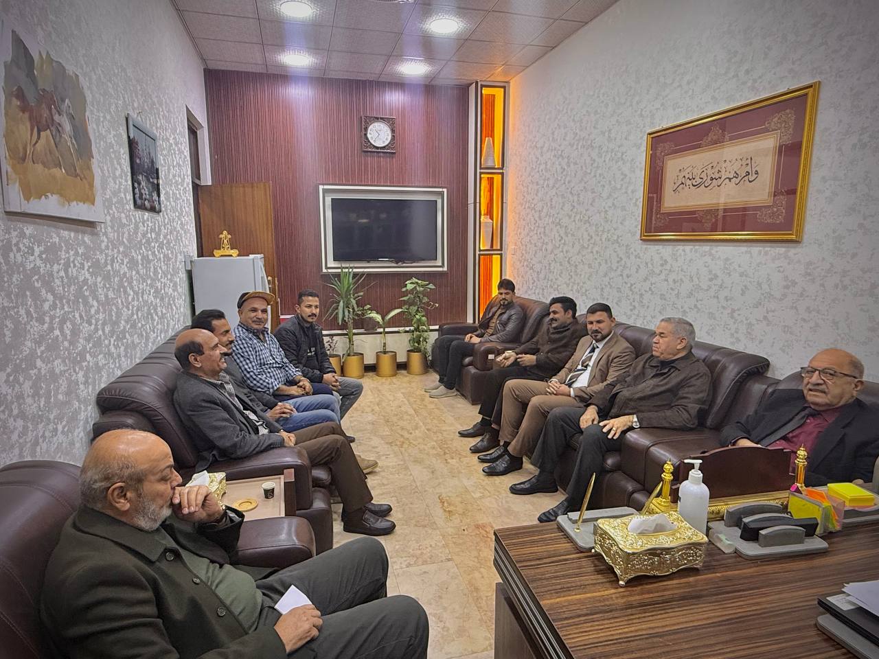 كما شهد اللقاء حضور كلٍّ من مدير الديوان ومدير القسم القانوني وقسم الشؤون الإدارية ومدير قسم الصيانة وشعبة الخدمات والشعبة الزراعية ومدير الأمنيّة، حيث جرى استعراض الأولويات وتوزيع المهام وتأكيد التنسيق المشترك لضمان تنفيذ المتطلبات وفق الخطط المعتمدة.