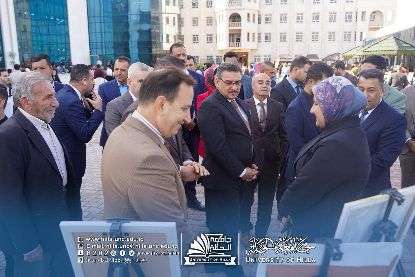 وحضر حفل الافتتاح رئيس جامعة الحلة الأستاذ الدكتور عقيل السعدي، ورئيس مجلس محافظة بابل الأستاذ أسعد المسلماوي، وعميد كلية الفنون الجميلة الاستاذ الدكتور علي الربيعي، والمعاون العلمي المدرس المساعد حوراء إسماعيل، إلى جانب عدد من التدريسيين والطلبة والمهتمين بالفنون.