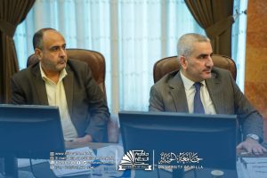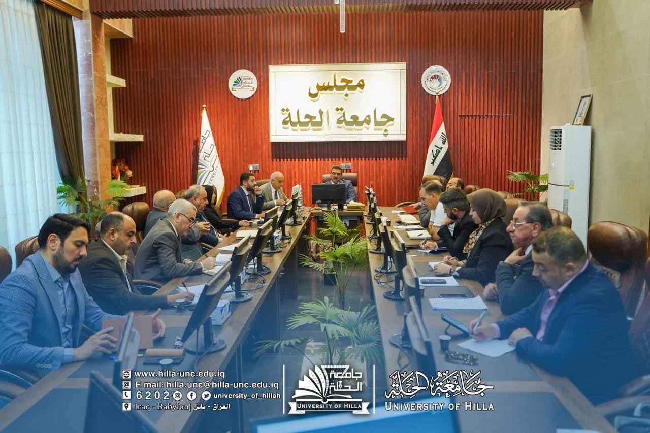 عقد مجلس جامعة الحلة اجتماعه الدوري برئاسة الأستاذ الدكتور (عقيل السعدي)، رئيس الجامعة، وبحضور جميع أعضاء المجلس من مساعدي رئيس الجامعة وعمداء الكليات.