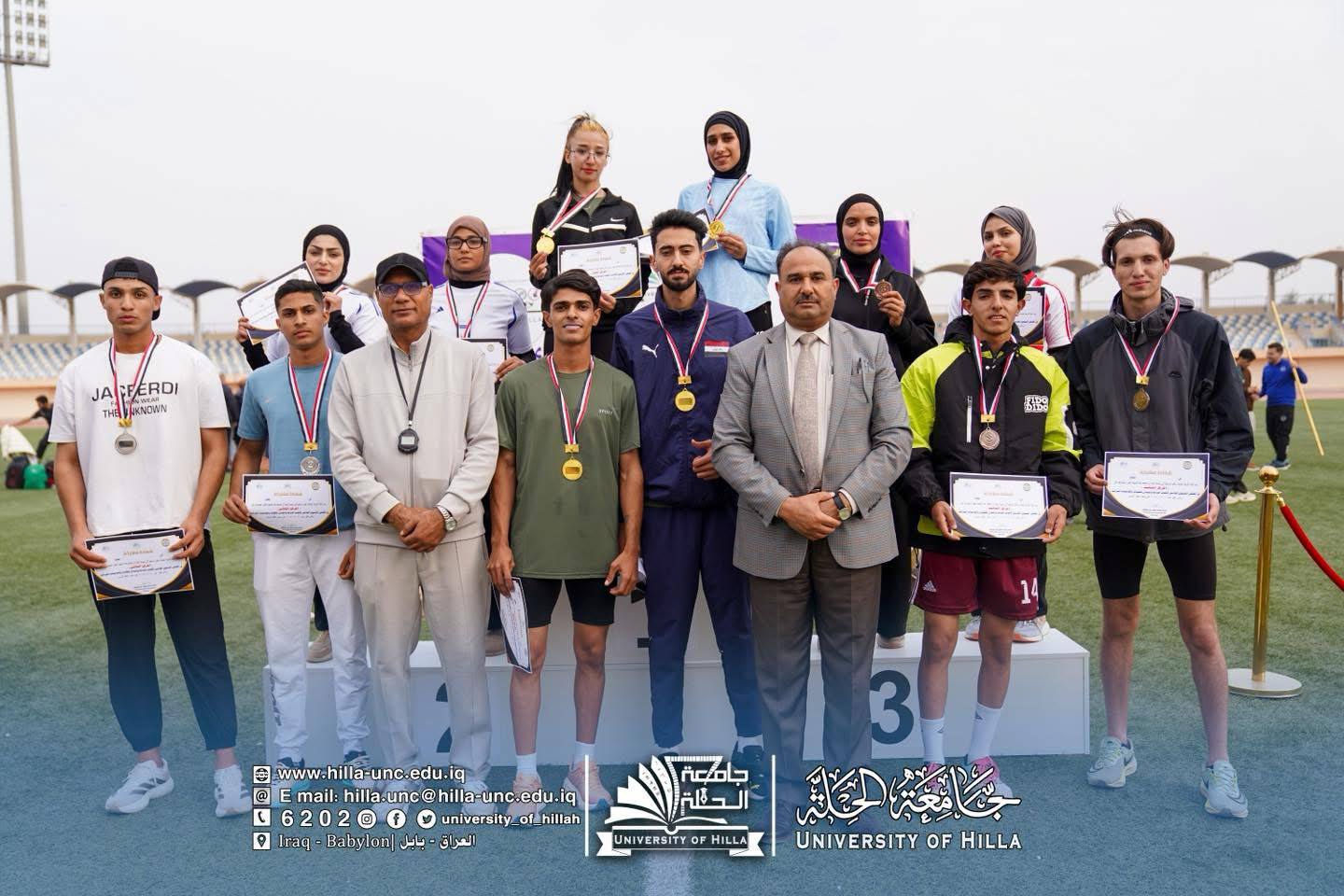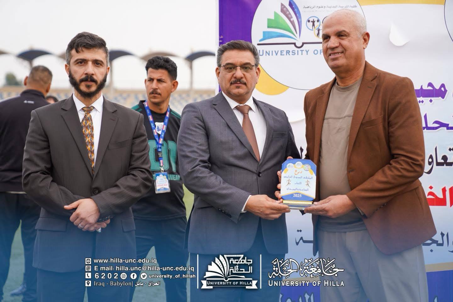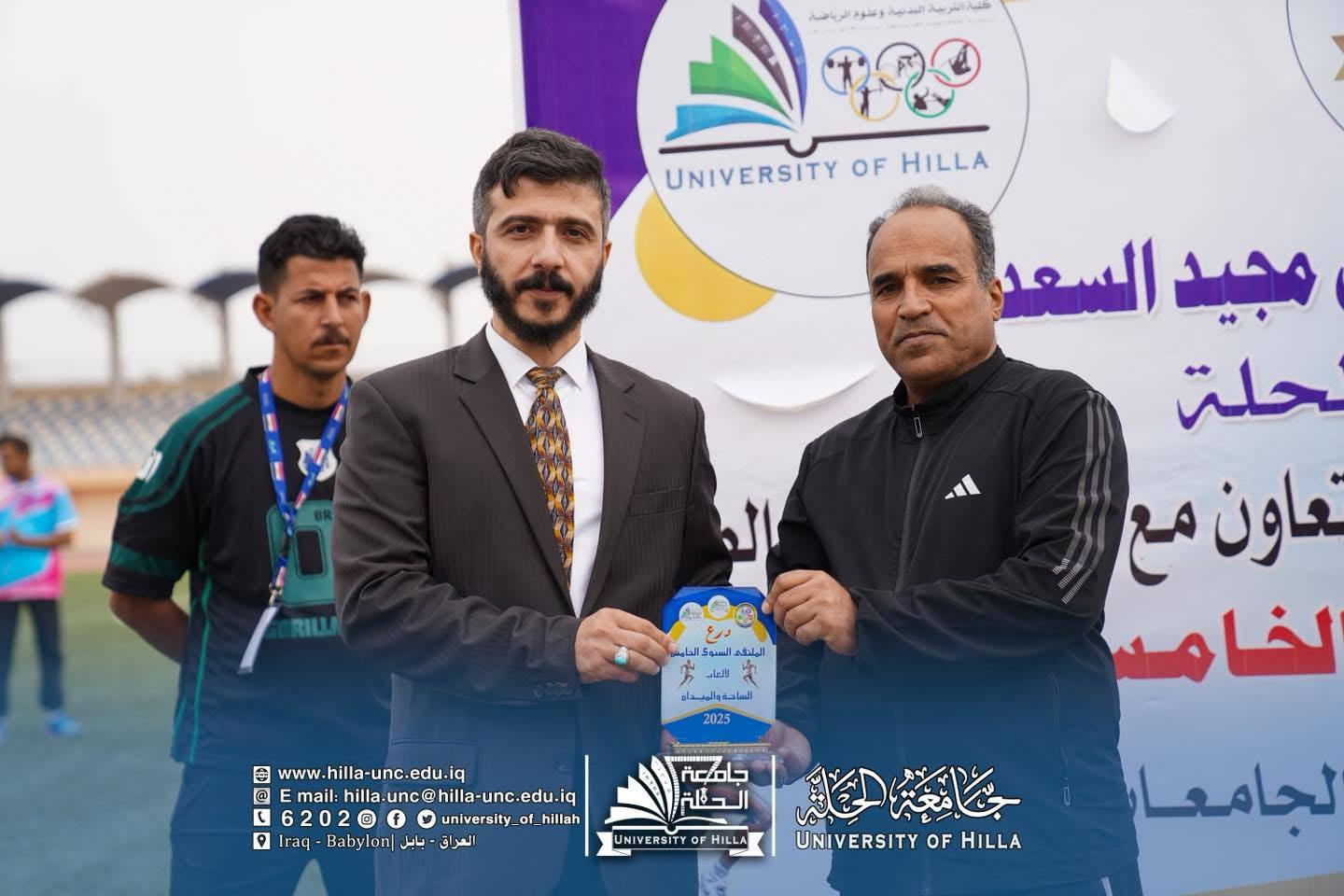 برعاية الأستاذ الدكتور عقيل السعدي رئيس جامعة الحلة، وبإشراف مباشر من عميد كلية التربية البدنية وعلوم الرياضة الدكتور علي الحسناوي، اختُتمت اليوم فعاليات الملتقى السنوي الخامس لألعاب الساحة والميدان الذي نظمته الكلية بالتعاون مع شعبة الأنشطة الطلابية في جامعة الحلة، بمشاركة عشرين جامعة حكومية وأهلية من مختلف محافظات العراق.