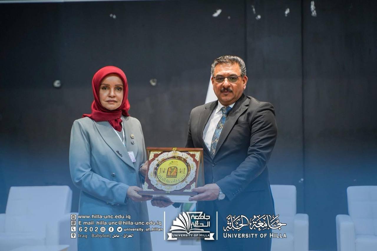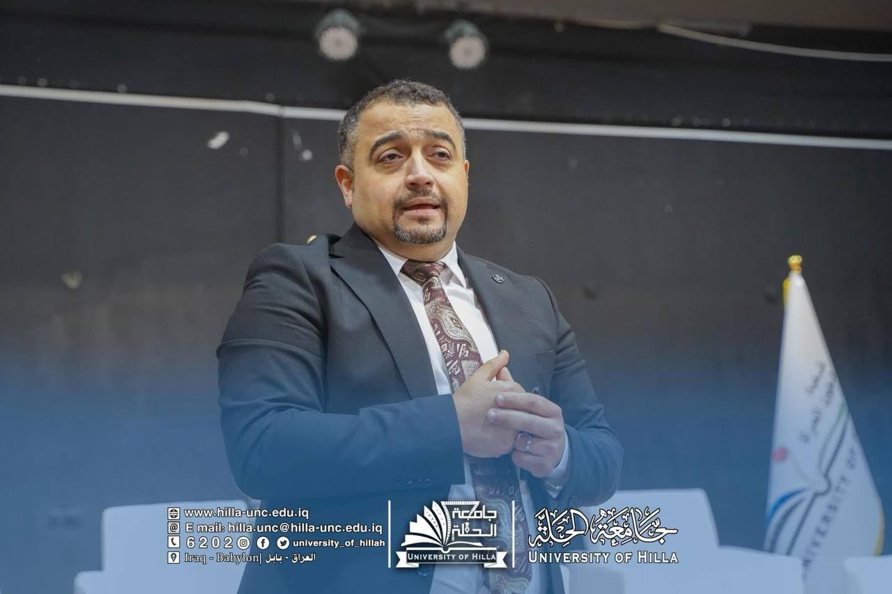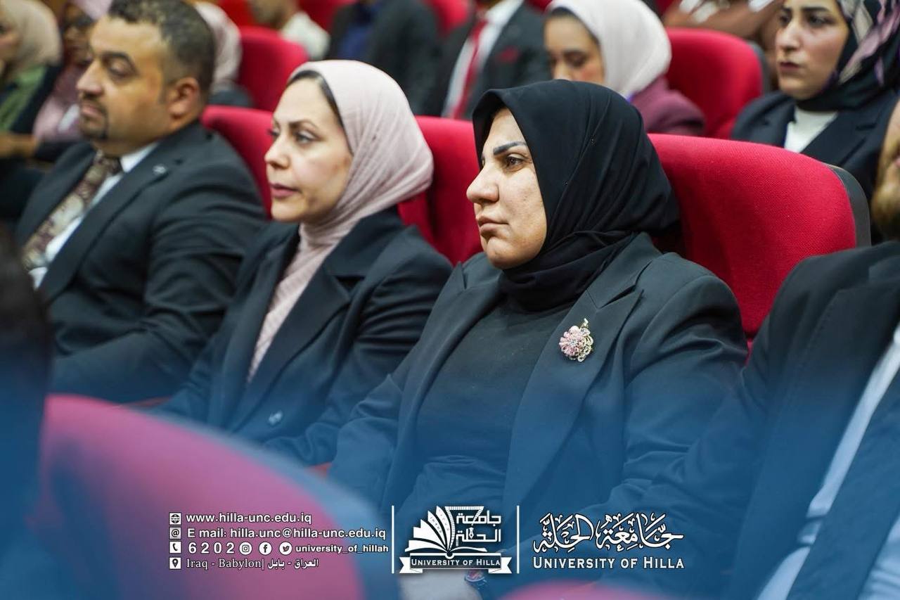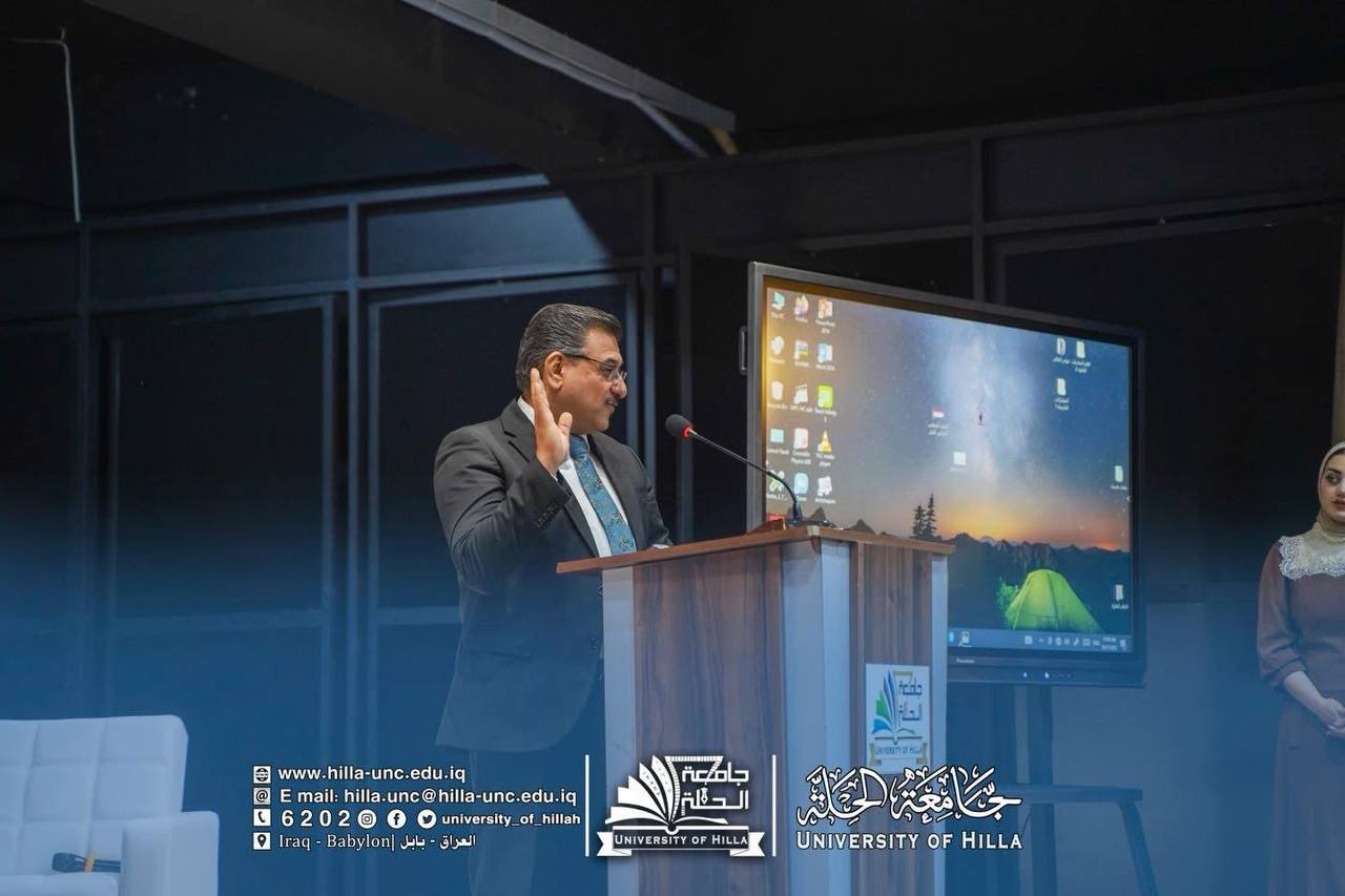 ثم ألقى السيد رئيس جامعة الحلة الأستاذ الدكتور عقيل السعدي كلمةً أكد فيها أهمية تمكين المرأة العراقية في المجالات الأكاديمية والعلمية والمجتمعية، ودعمها في مسارات القيادة وصناعة القرار.