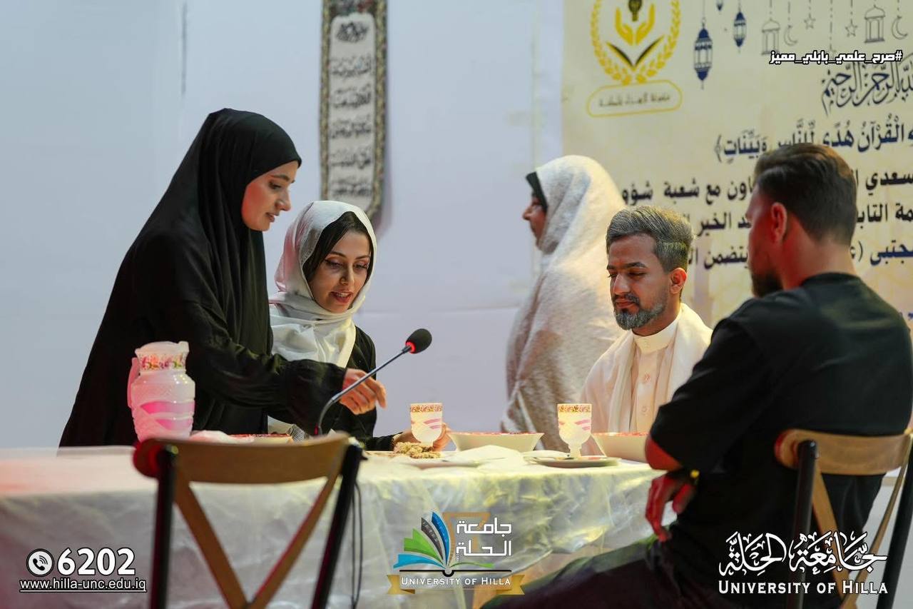 برعاية السيد رئيس جامعة الحلة، الأستاذ الدكتور عقيل السعدي، وبالتعاون مع شعبة شؤون المرأة في الجامعة، نظّمت مجموعة الزهراء فاطمة التابعة لفريق سواعد الخير الطبي محفلًا رمضانيًا مميزًا احتفاءً بذكرى ولادة الإمام الحسن المجتبى (عليه السلام).