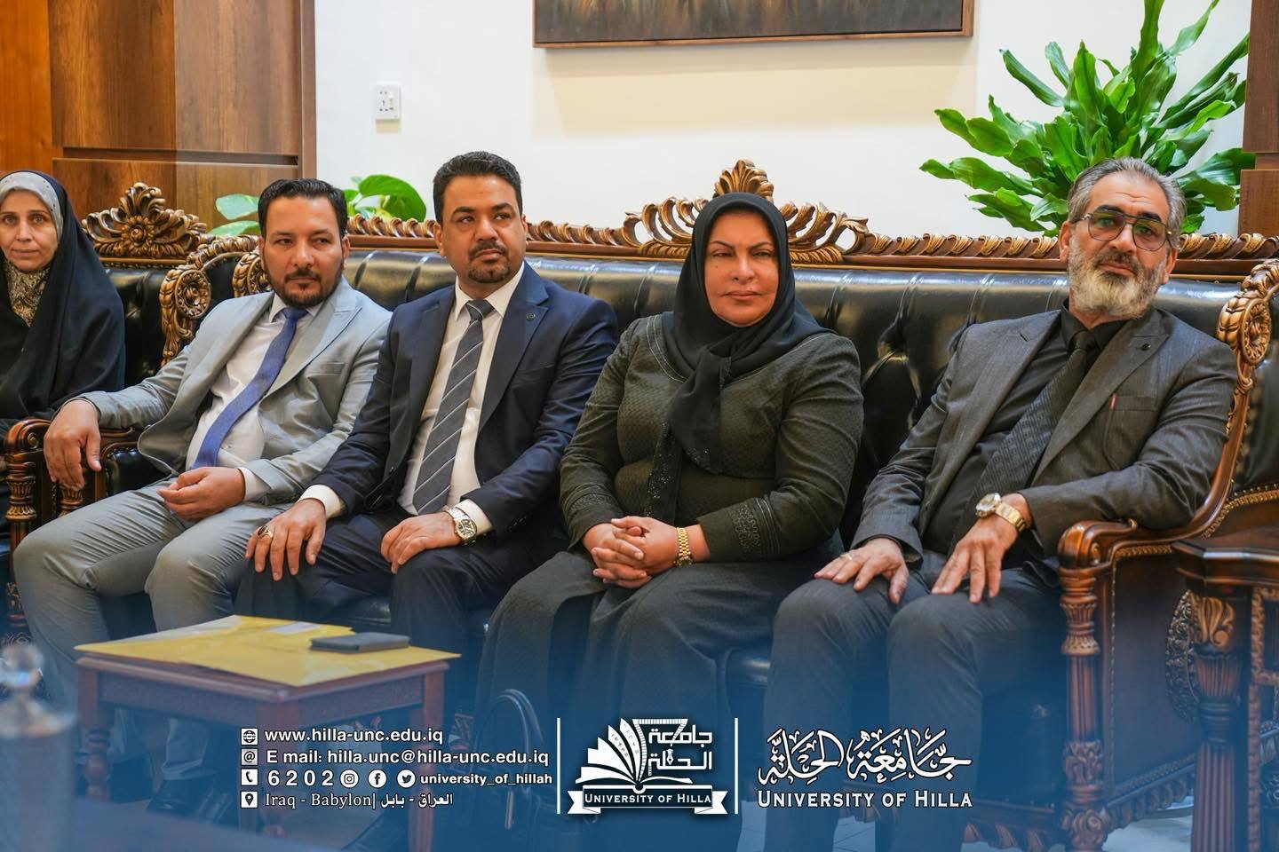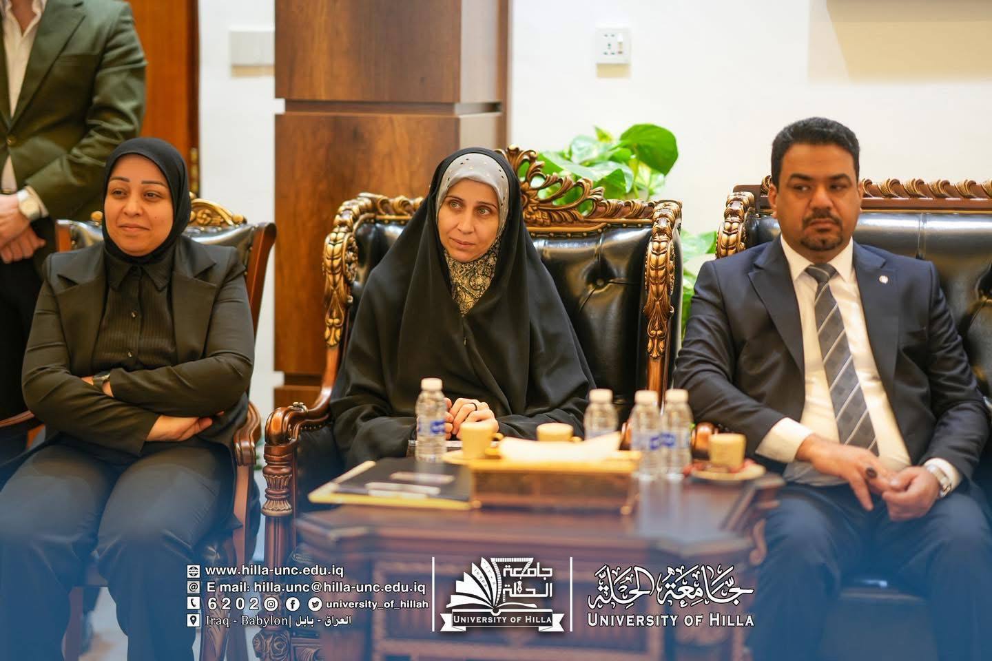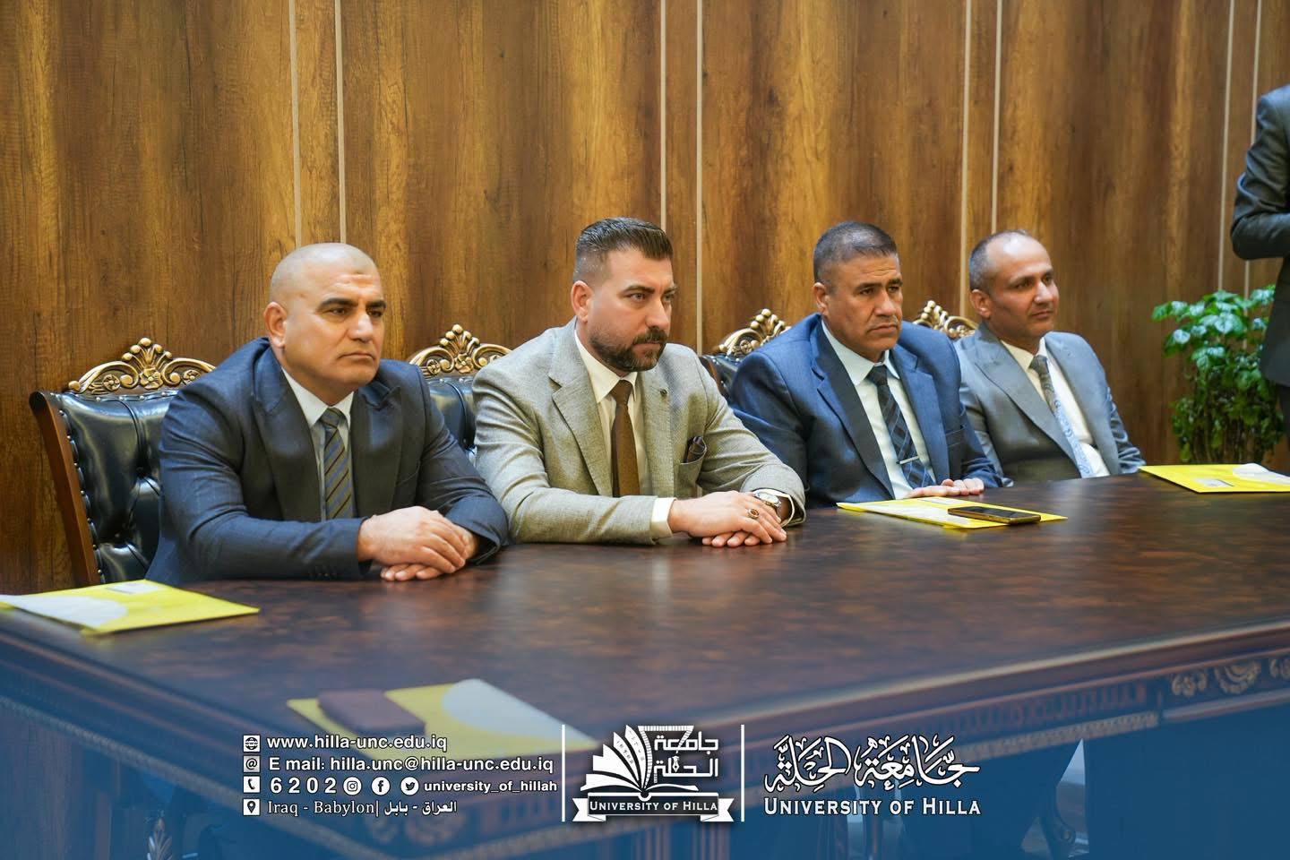 وكان في استقبال الوفد الزائر الأستاذ الدكتور عقيل السعدي رئيس جامعة الحلة، والأستاذ المساعد الدكتور عماد سلام عبود مساعد رئيس الجامعة للشؤون العلمية، والأستاذ الدكتور المتمرس حسن علوان بيعي عميد كلية التمريض في جامعة الحلة.