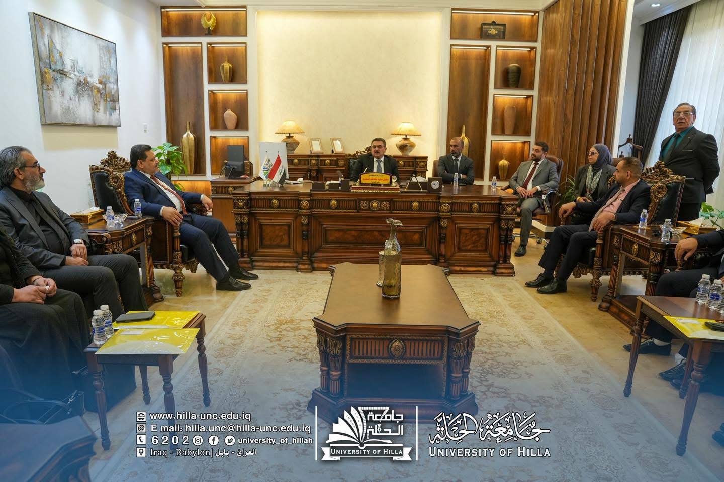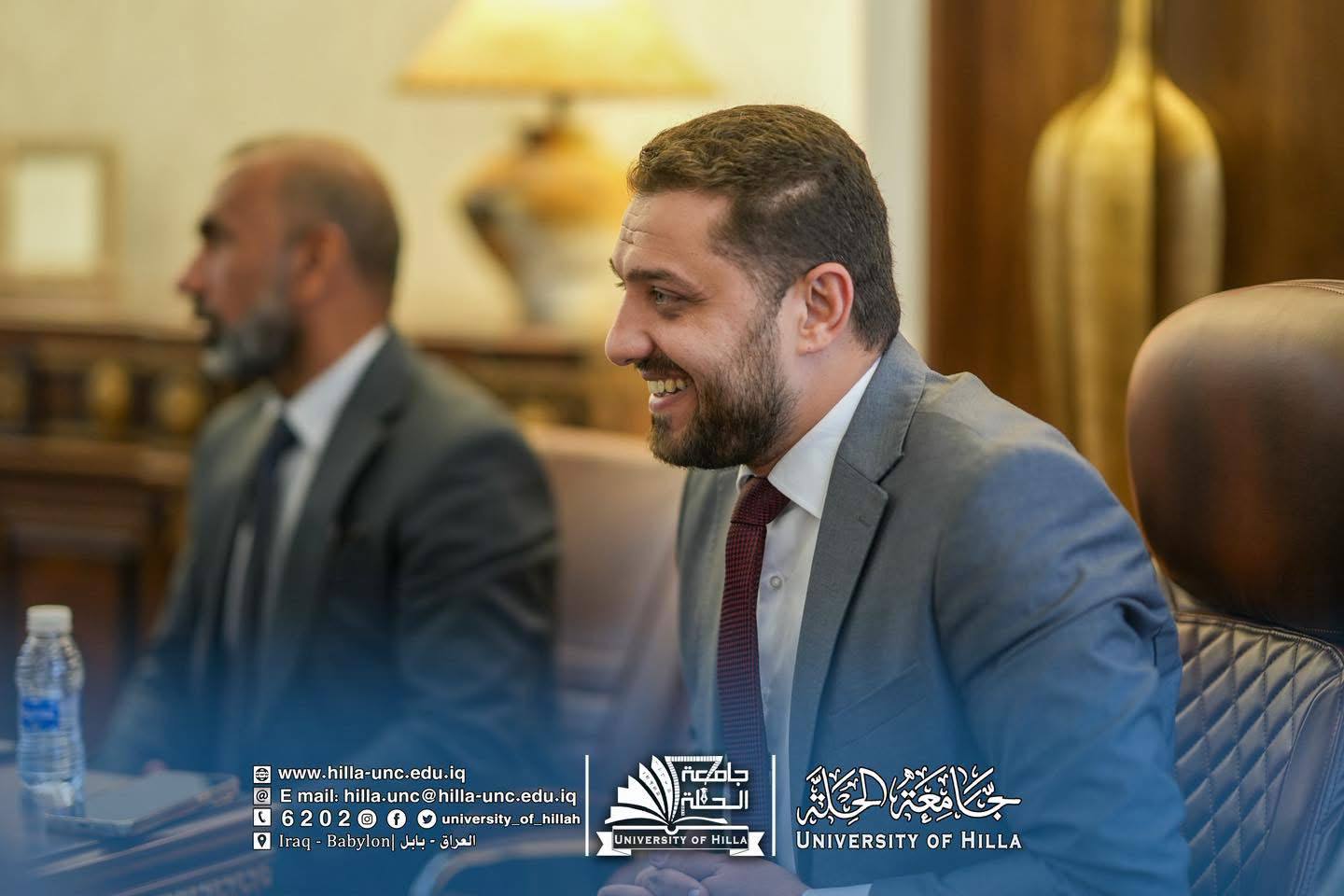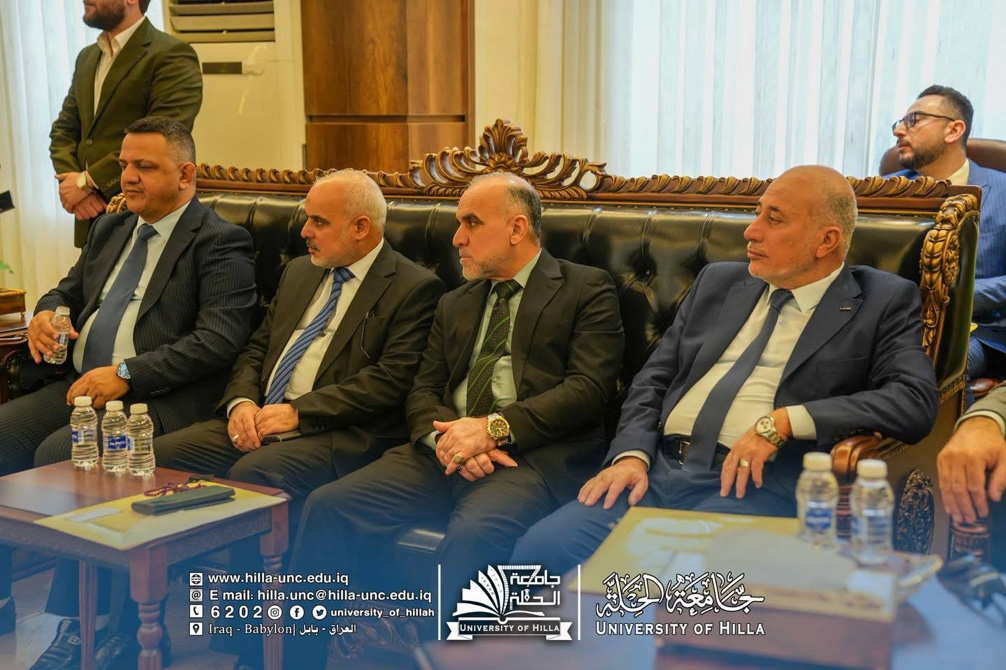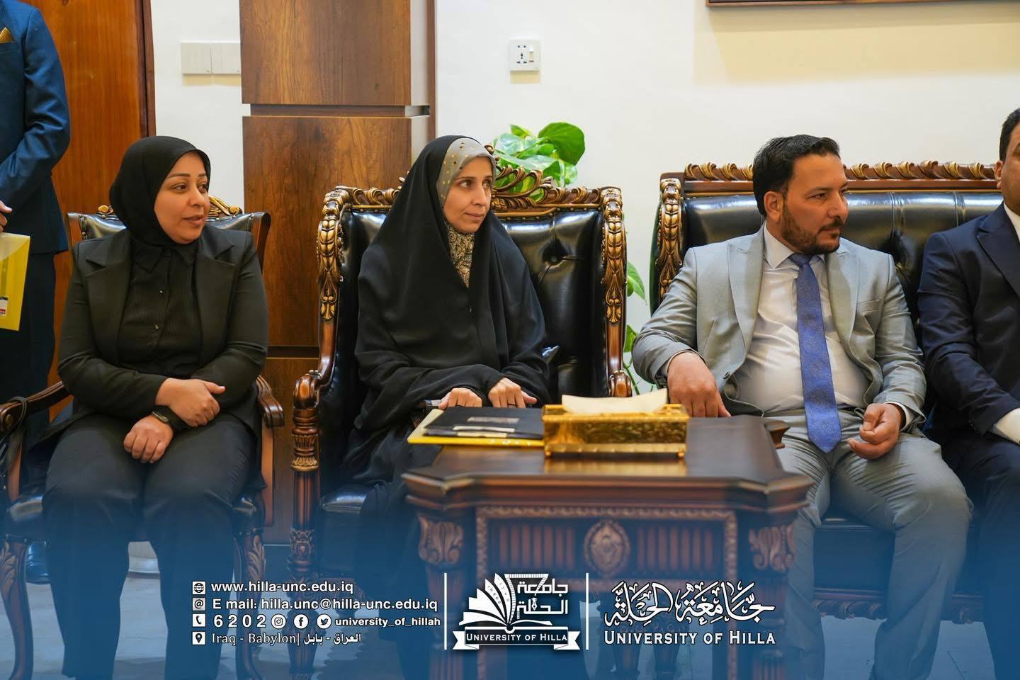 وكان في استقبال الوفد الزائر الأستاذ الدكتور عقيل السعدي رئيس جامعة الحلة، والأستاذ المساعد الدكتور عماد سلام عبود مساعد رئيس الجامعة للشؤون العلمية، والأستاذ الدكتور المتمرس حسن علوان بيعي عميد كلية التمريض في جامعة الحلة.
