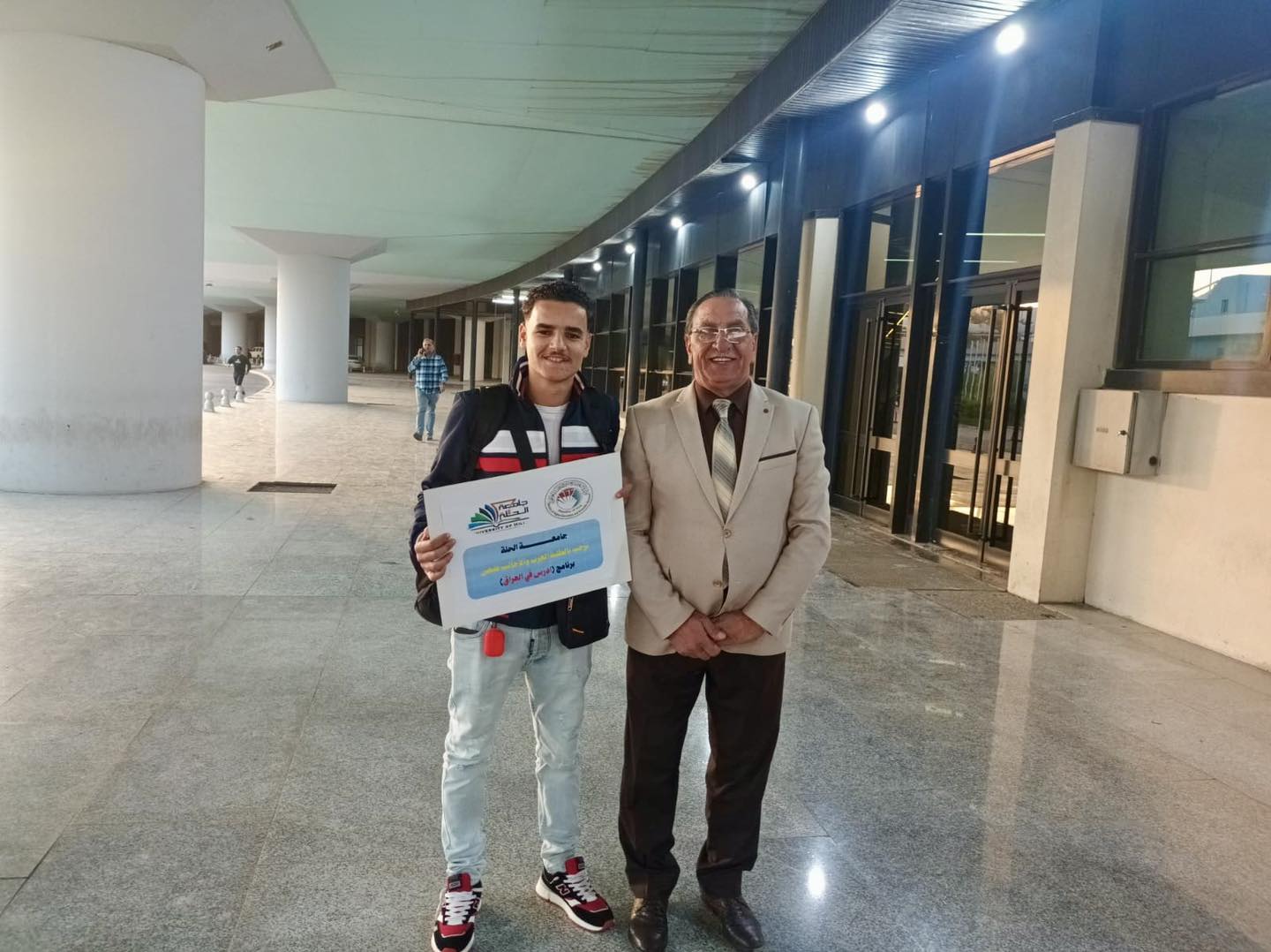 كان في استقبال الطالب الأستاذ أحمد مالك، مسؤول البعثات والعلاقات الثقافية في الجامعة، بالإضافة إلى الدكتور مازن عبد الهادي والدكتور محمد عاصم، حيث تم الترحيب به وتقديم الدعم اللازم لتسهيل اندماجه في بيئة الجامعة.