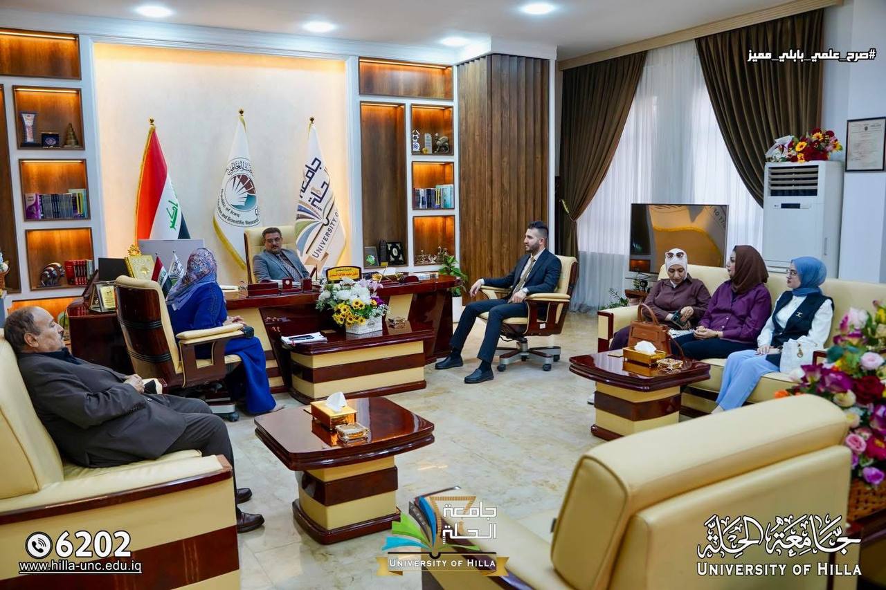 استقبل رئيس جامعة الحلة الأستاذ الدكتور عقيل السعدي، اللجنة الوزارية الخاصة بمتابعة مشروع “ادرس في العراق” الذي أطلقته وزارة التعليم العالي والبحث العلمي، وذلك بحضور المساعد العلمي لرئيس الجامعة الأستاذ المساعد الدكتور عماد سلام عبود، والمساعد الإداري الأستاذ الدكتور عبد العظيم نصار.