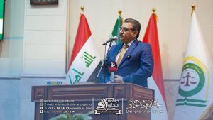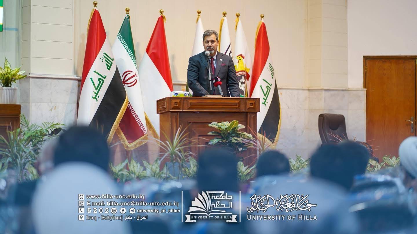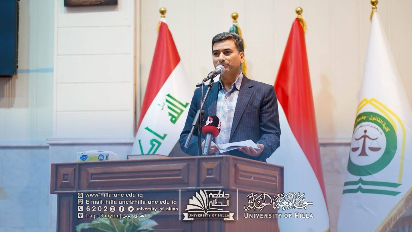 وفي كلمة له خلال المؤتمر، أكد رئيس جامعة الحلة الأستاذ الدكتور عقيل السعدي أن الذكاء الاصطناعي أصبح واقعاً مؤثراً في مختلف مجالات الحياة، الأمر الذي يستدعي تضافر الجهود الأكاديمية والقانونية لوضع أطر تنظيمية متوازنة تضمن حسن الاستفادة من هذه التقنيات مع الحفاظ على القيم القانونية والإنسانية، مشيراً إلى أن التعاون العلمي الدولي يمثل خطوة مهمة لتعزيز البحث الرصين وتبادل الخبرات بين الجامعات.