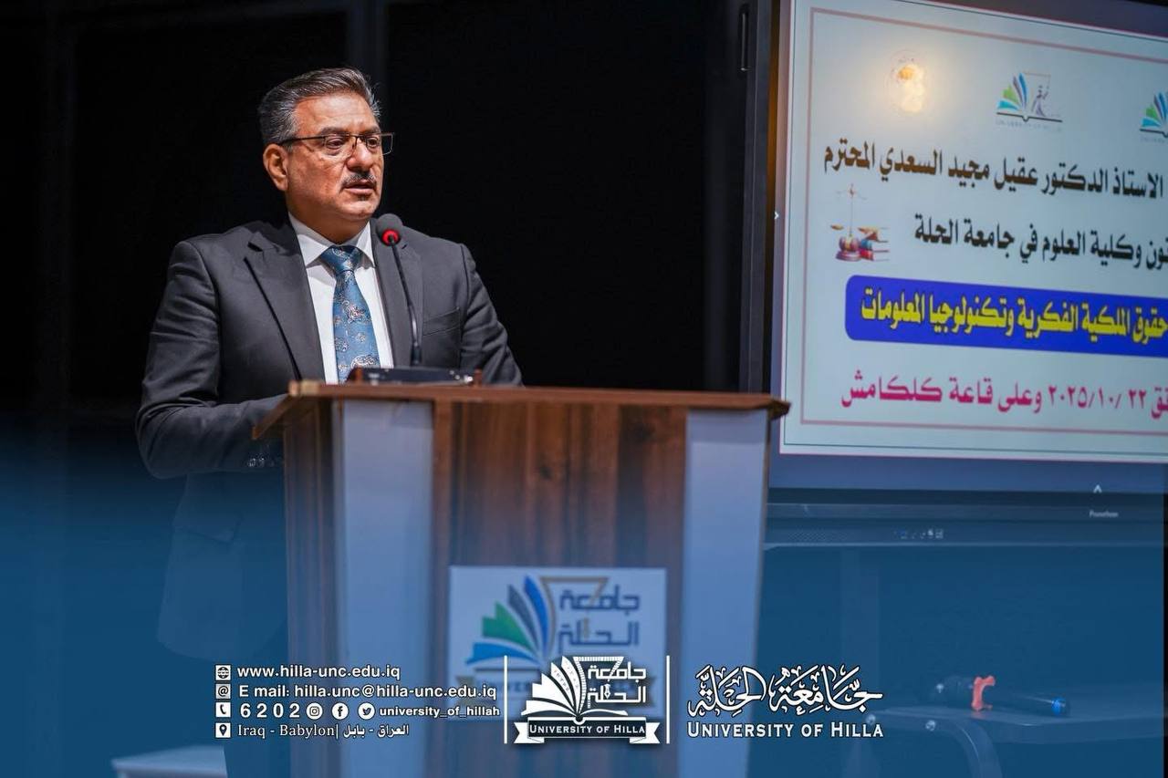 برعاية رئيس جامعة الحلة الأستاذ الدكتور عقيل السعدي، انطلقت في أروقة الجامعة فعاليات المؤتمر الدولي الأول حول حقوق الملكية الفكرية وتكنولوجيا المعلومات، الذي نظمته كلية القانون بالتعاون مع كلية العلوم، بمشاركة واسعة من شخصيات أكاديمية وباحثين محليين ودوليين.