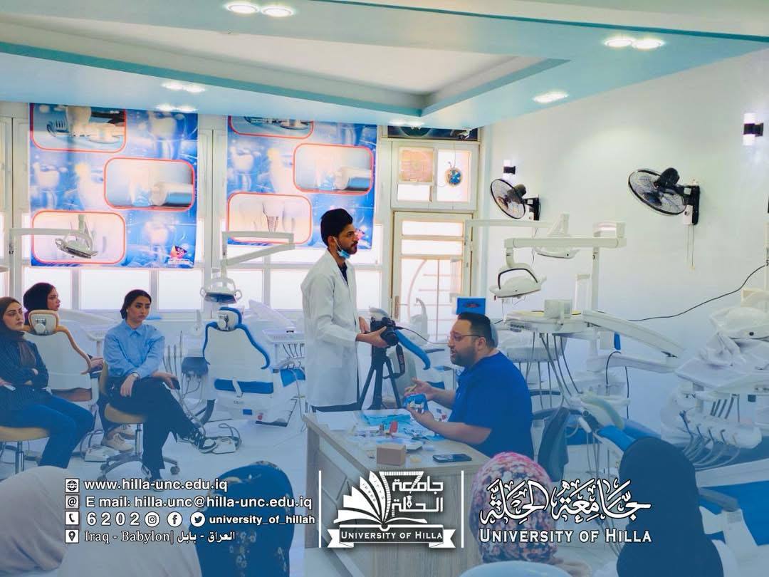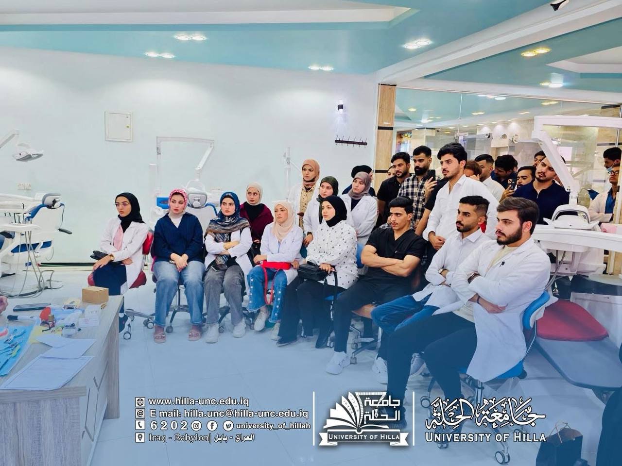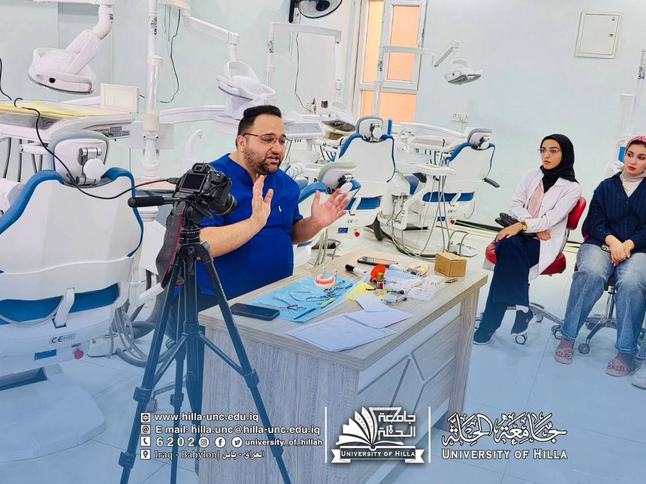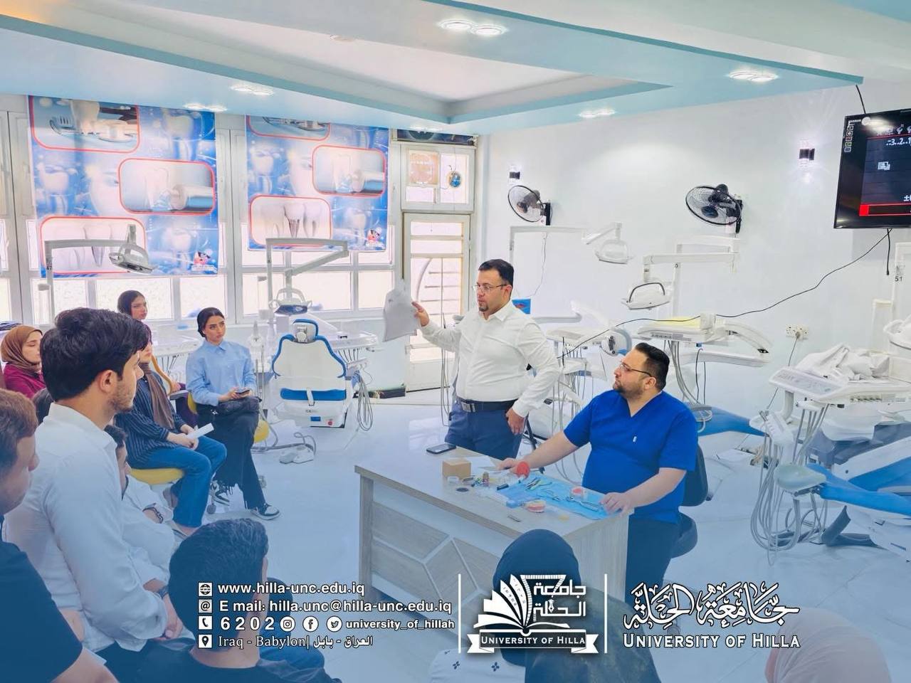 برعاية الأستاذ الدكتور عقيل السعدي رئيس جامعة الحلة، والدكتور علي محسن الياسري عميد كلية طب الأسنان، وبإشراف مباشر من مدير العيادات التعليمية الدكتور ميثم يحيى الطفيلي، أقامت العيادات التعليمية التابعة لجامعة الحلة ورشة سريرية مجانية متخصصة حول مراحل عمل الحشوات في قسم ترميم الأسنان لطلبة المرحلة الرابعة.