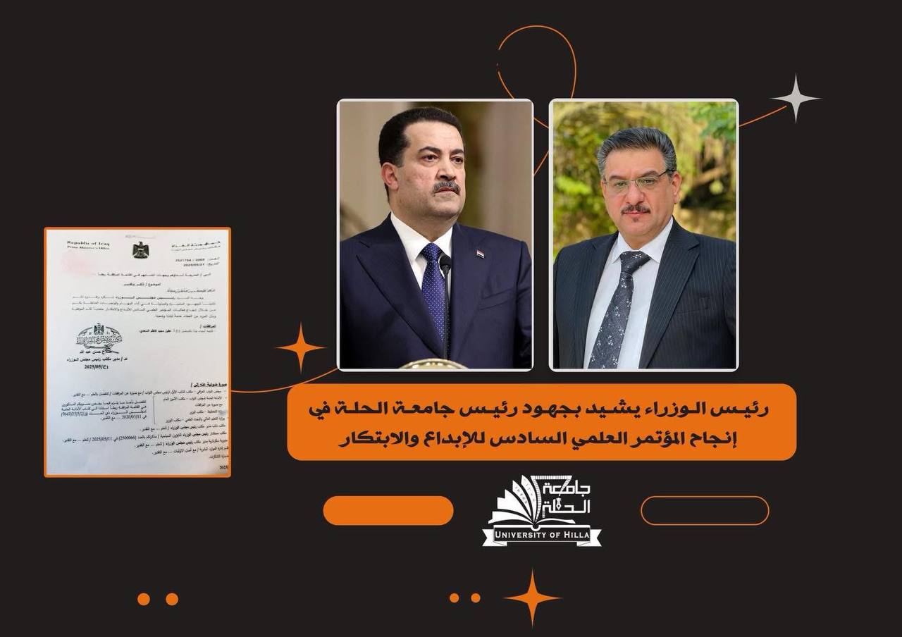 من جانبه، عبّر الأستاذ الدكتور عقيل السعدي عن بالغ شكره واعتزازه بهذا التقدير، قائلًا: “إن نيل هذا الشكر من دولة رئيس الوزراء هو وسام فخر لكل منتسبي جامعة الحلة، ويعكس حجم الجهود التي بذلت من كوادر الجامعة لإنجاح هذا المحفل العلمي الوطني، ونؤكد مضينا قدمًا في دعم البحث العلمي وتعزيز بيئة الإبداع والابتكار، بما يسهم في خدمة مجتمعنا وتحقيق التنمية المستدامة.