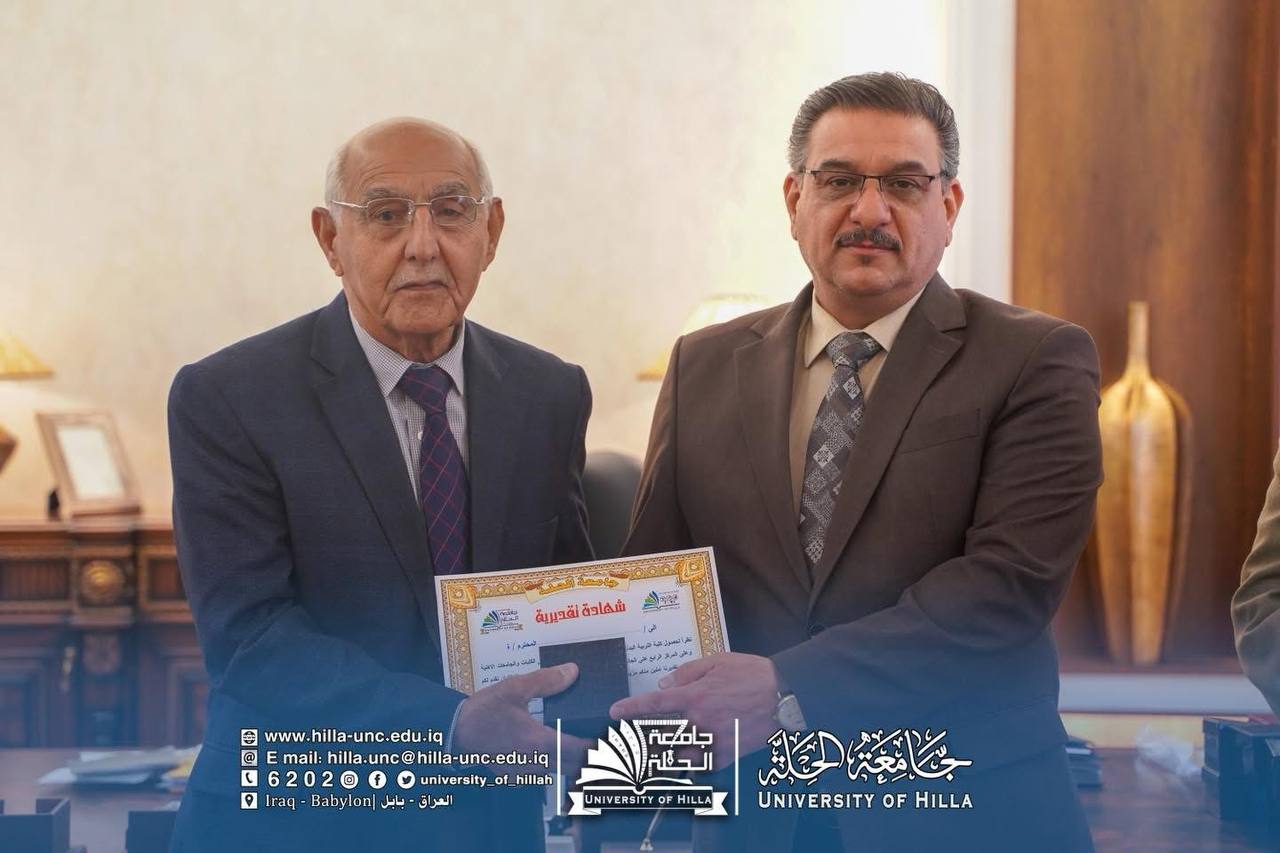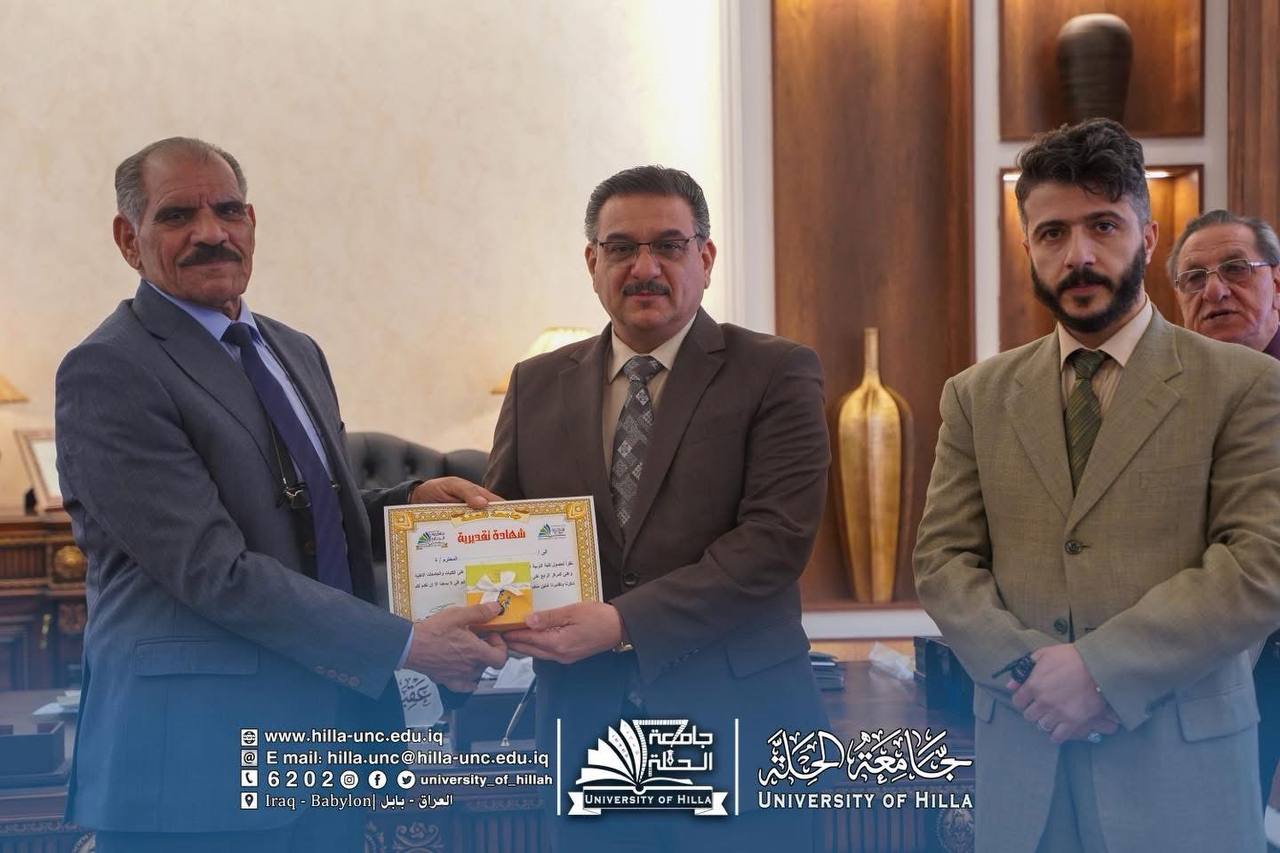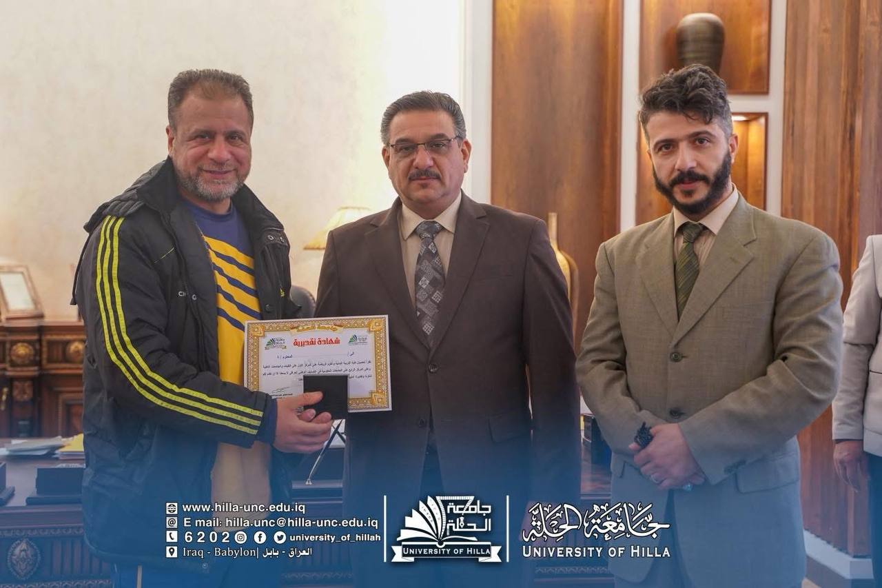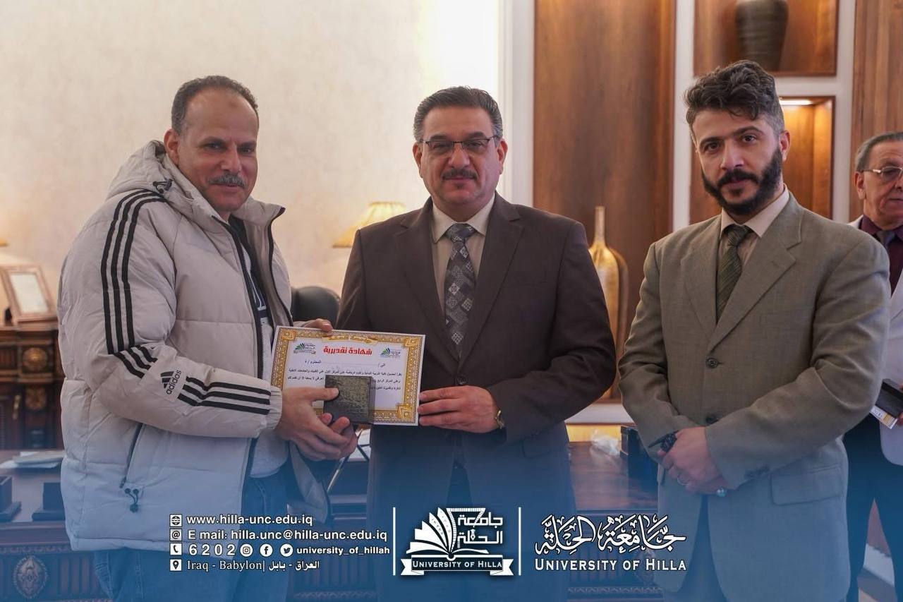 في أجواء أكاديمية مفعمة بالتقدير والاعتزاز، كرّم السيد رئيس جامعة الحلة الأستاذ الدكتور عقيل السعدي كادر كلية التربية البدنية وعلوم الرياضة، تثميناً لجهودهم العلمية والتربوية ودورهم الفاعل في الارتقاء بالواقع الأكاديمي والرياضي في الجامعة، ولاسيما بعد حصول الكلية على المركز الأول في التصنيف الوطني العراقي، وهو إنجاز يعكس مستوى الأداء المؤسسي والتميز الأكاديمي الذي حققته الكلية.