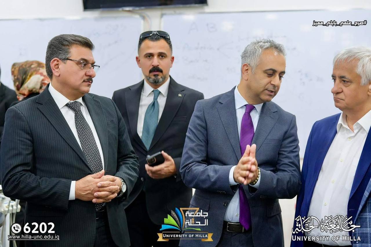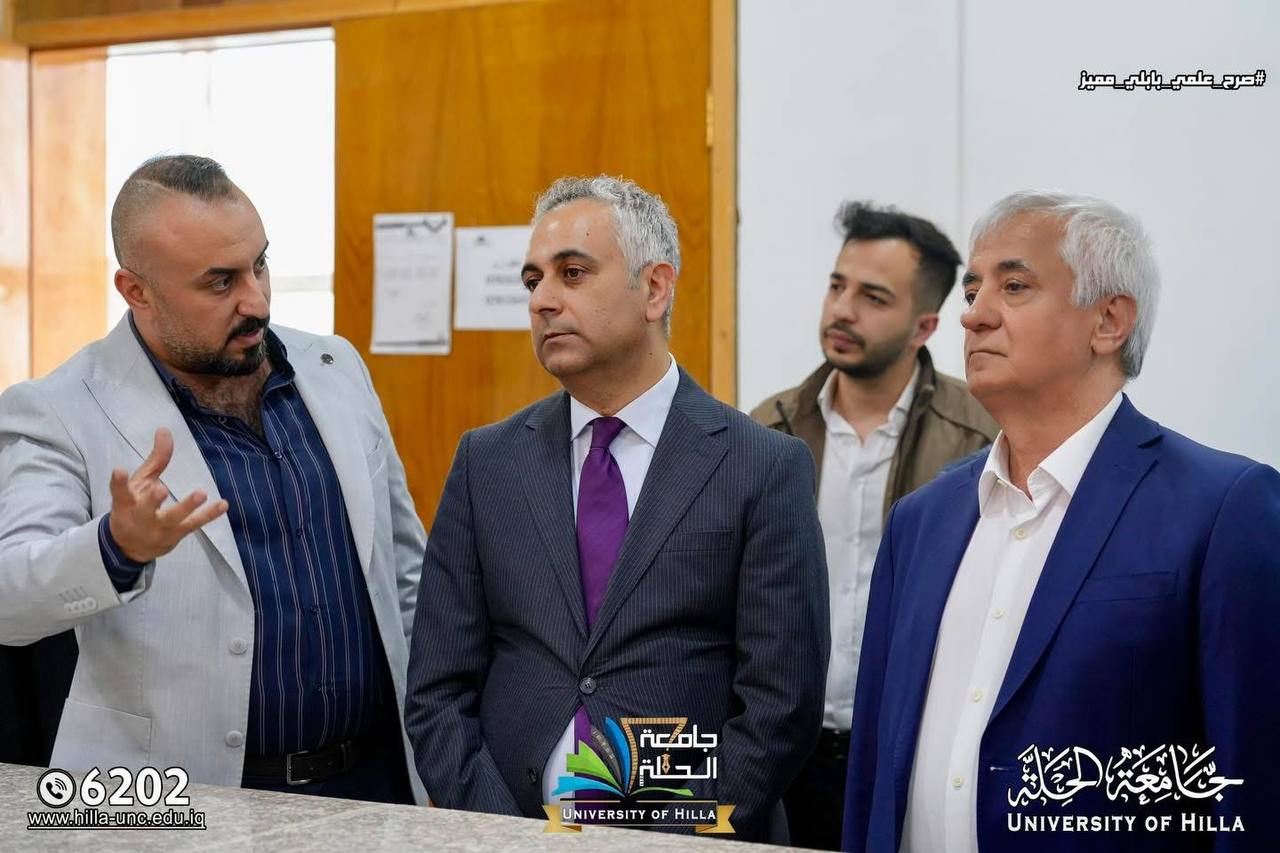 وكان في استقبال الوفد رئيس جامعة الحلة الأستاذ الدكتور (عقيل السعدي)، والسيد مساعد رئيس الجامعة للشؤون العلمية الأستاذ المساعد الدكتور عماد سلام عبود، وعدد من أساتذة الجامعة.