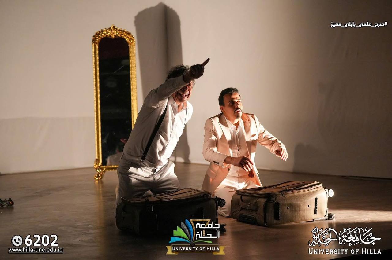 المسرحية، التي قدمها قسم الفنون المسرحية في كلية الفنون الجميلة – جامعة الحلة، جاءت بإخراج الأستاذ حسن الغبيني، التدريسي في قسم المسرح، وشارك في بطولتها نخبة من أساتذة القسم، بينهم كاظم خنجر وحسين جواد، بالإضافة إلى مجموعة من طلبة قسم المسرح.