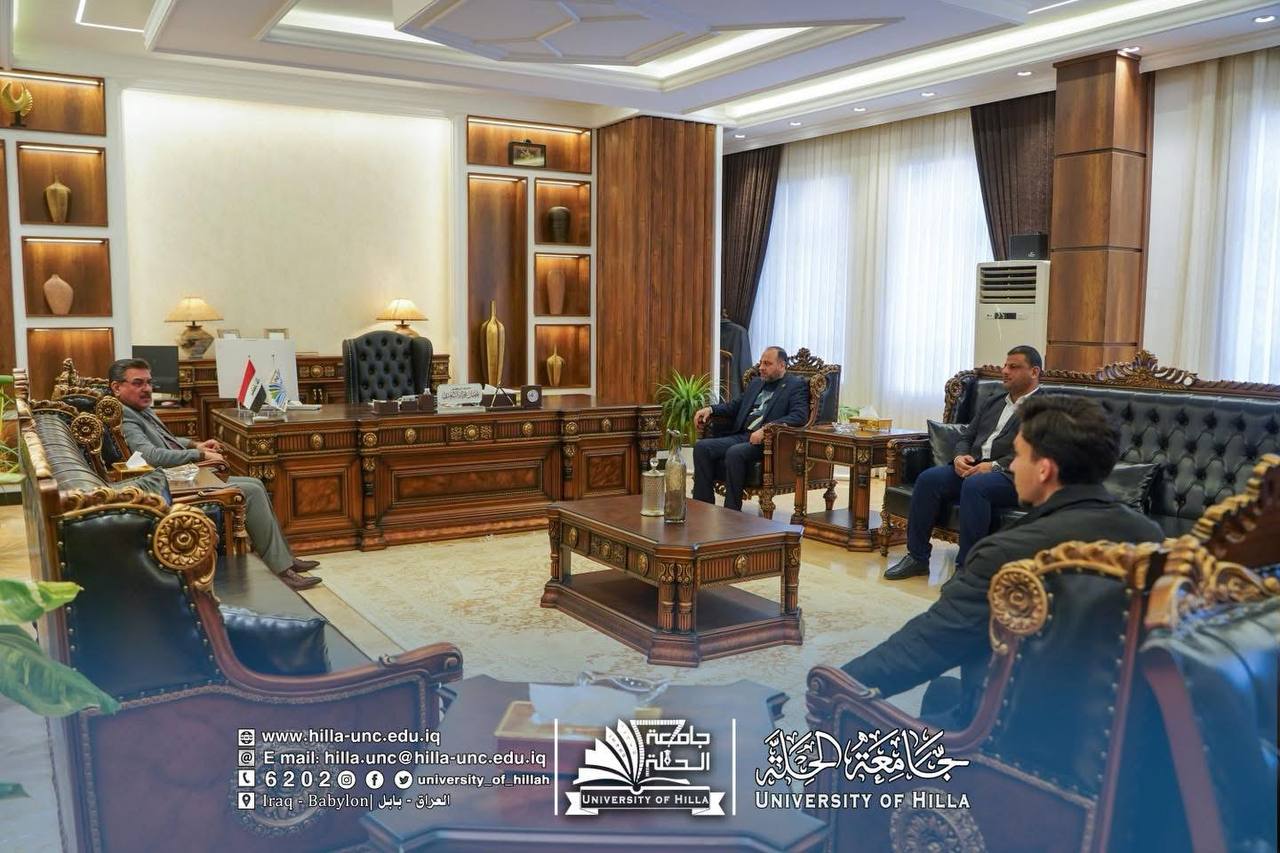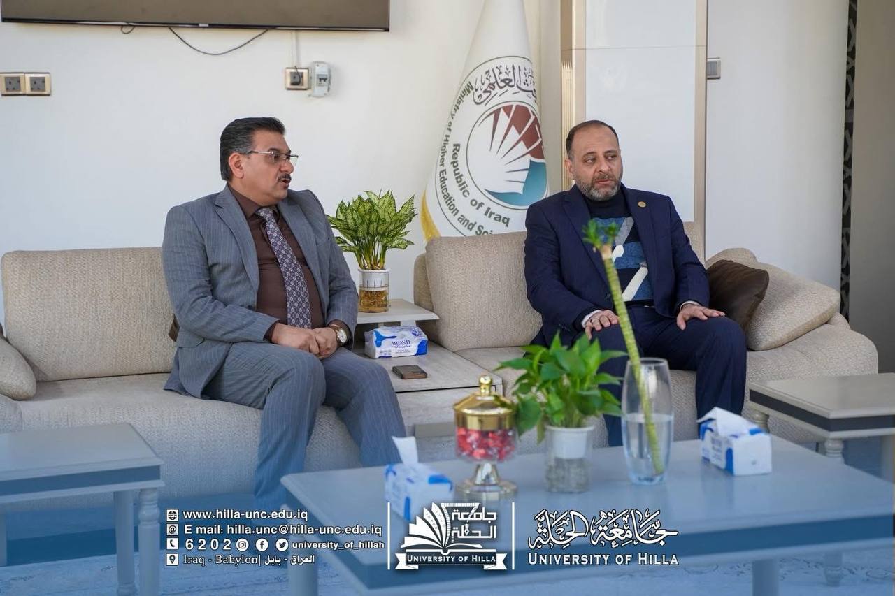 استقبل رئيس جامعة الحلة الأستاذ الدكتور عقيل السعدي، في مكتبه، عضو مجلس النواب العراقي الدكتور حيدر المطيري، خلال زيارة رسمية إلى الجامعة للاطلاع على سير العملية التعليمية والمشاريع التطويرية فيها.