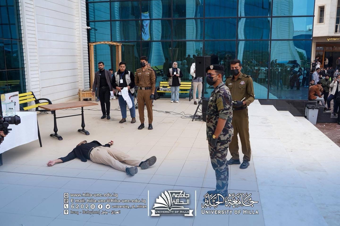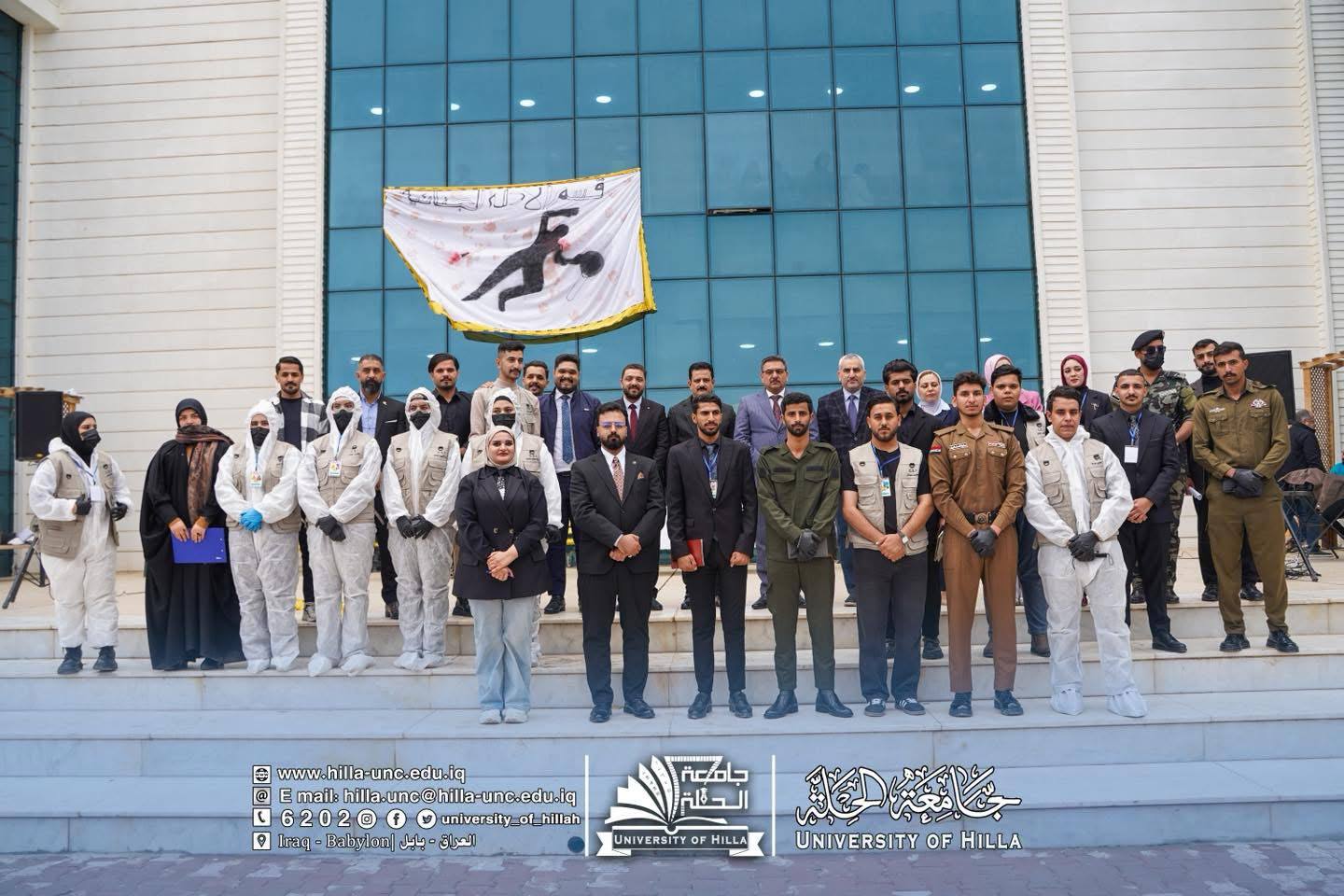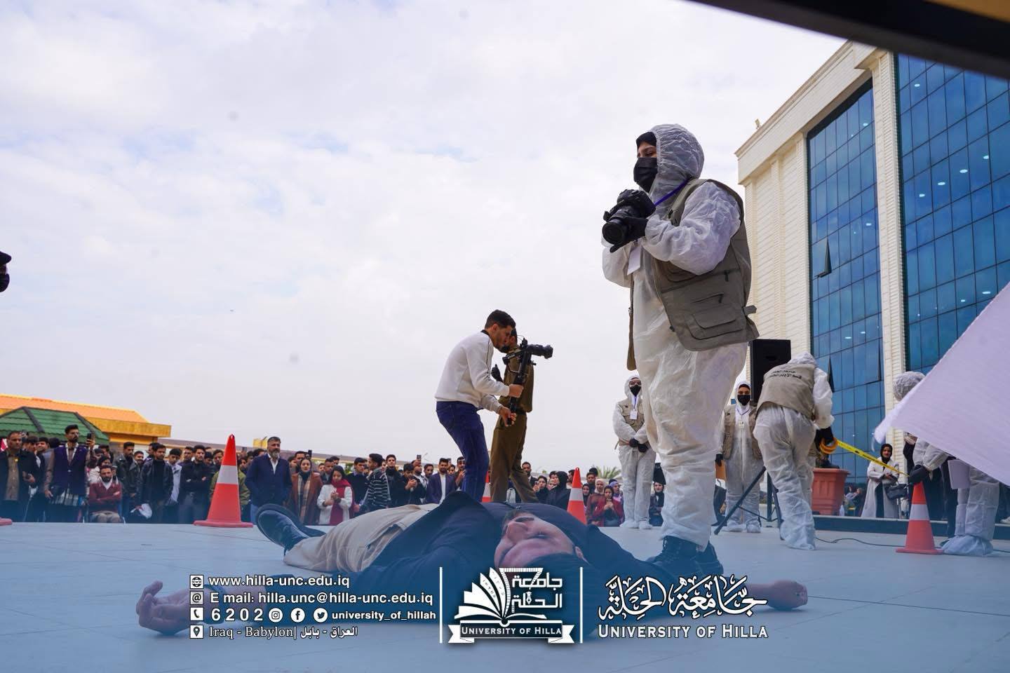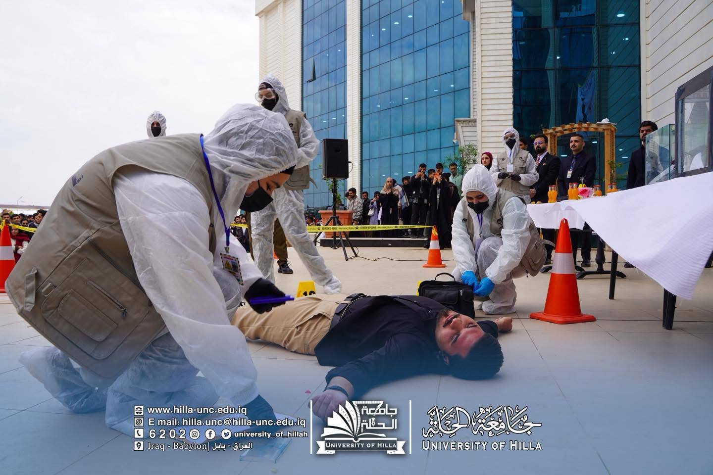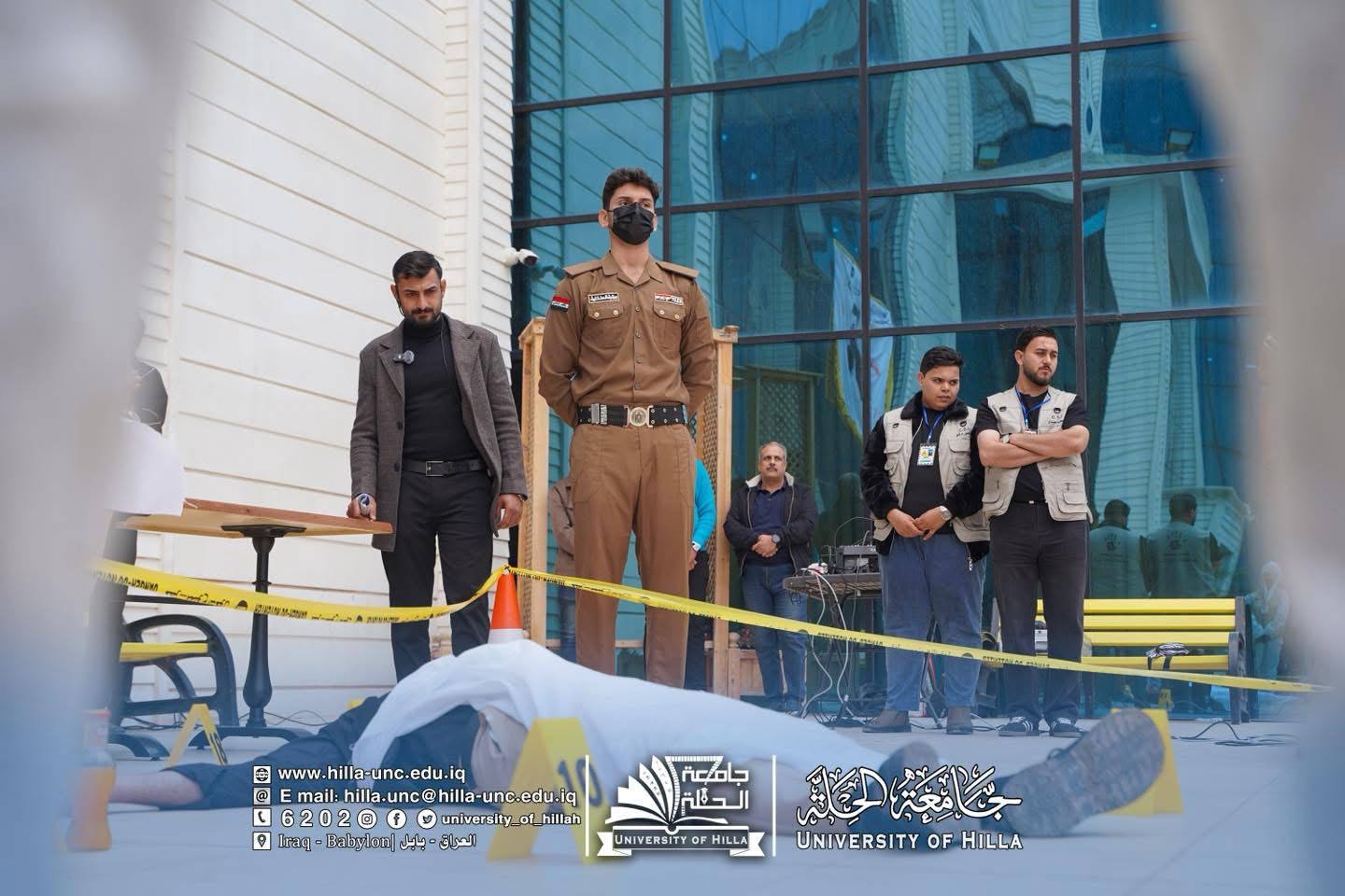 برعاية رئيس جامعة الحلة الأستاذ الدكتور عقيل السعدي المحترم، وبإشراف عميد كلية العلوم الأستاذ الدكتور أسعد صباح المحترم، ورئيس قسم الأدلة الجنائية المدرس الدكتور رقية يحيى عبد الشهيد المحترمة، وبمتابعة مدير مركز التعليم المستمر المدرس الدكتور عدنان الراجحي المحترم، أقام قسم الأدلة الجنائية في جامعة الحلة عرضًا تدريبيًا محاكيًا للواقع تمثل بـ مسرح جريمة افتراضي لحوادث القتل في الأماكن المفتوحة.