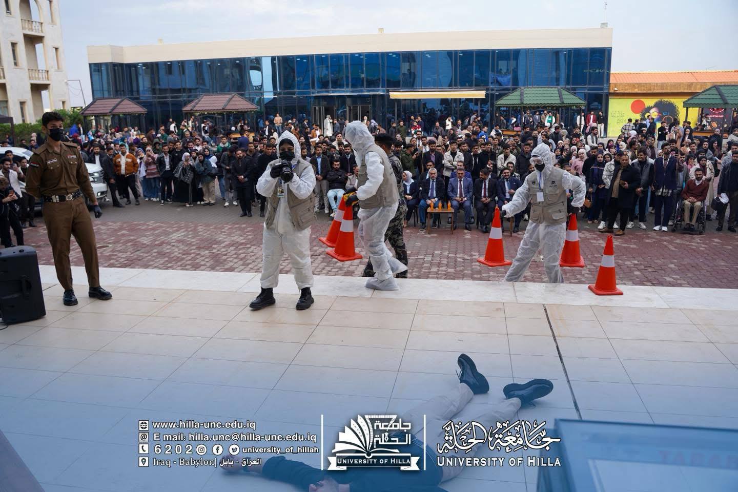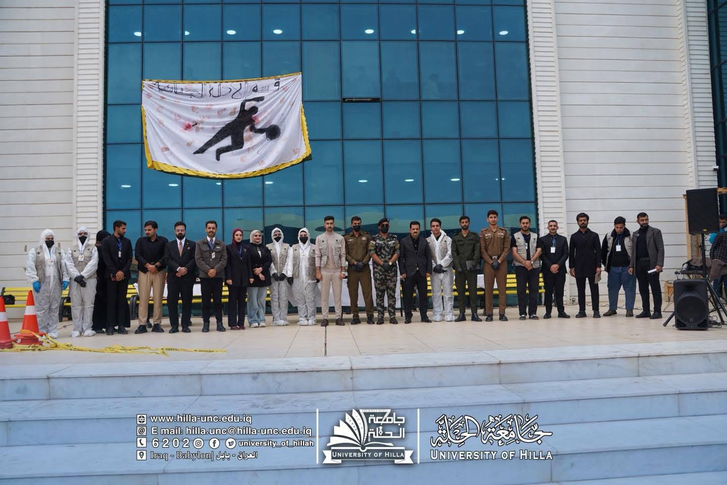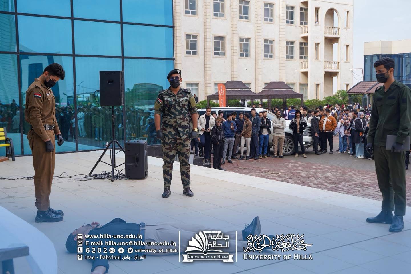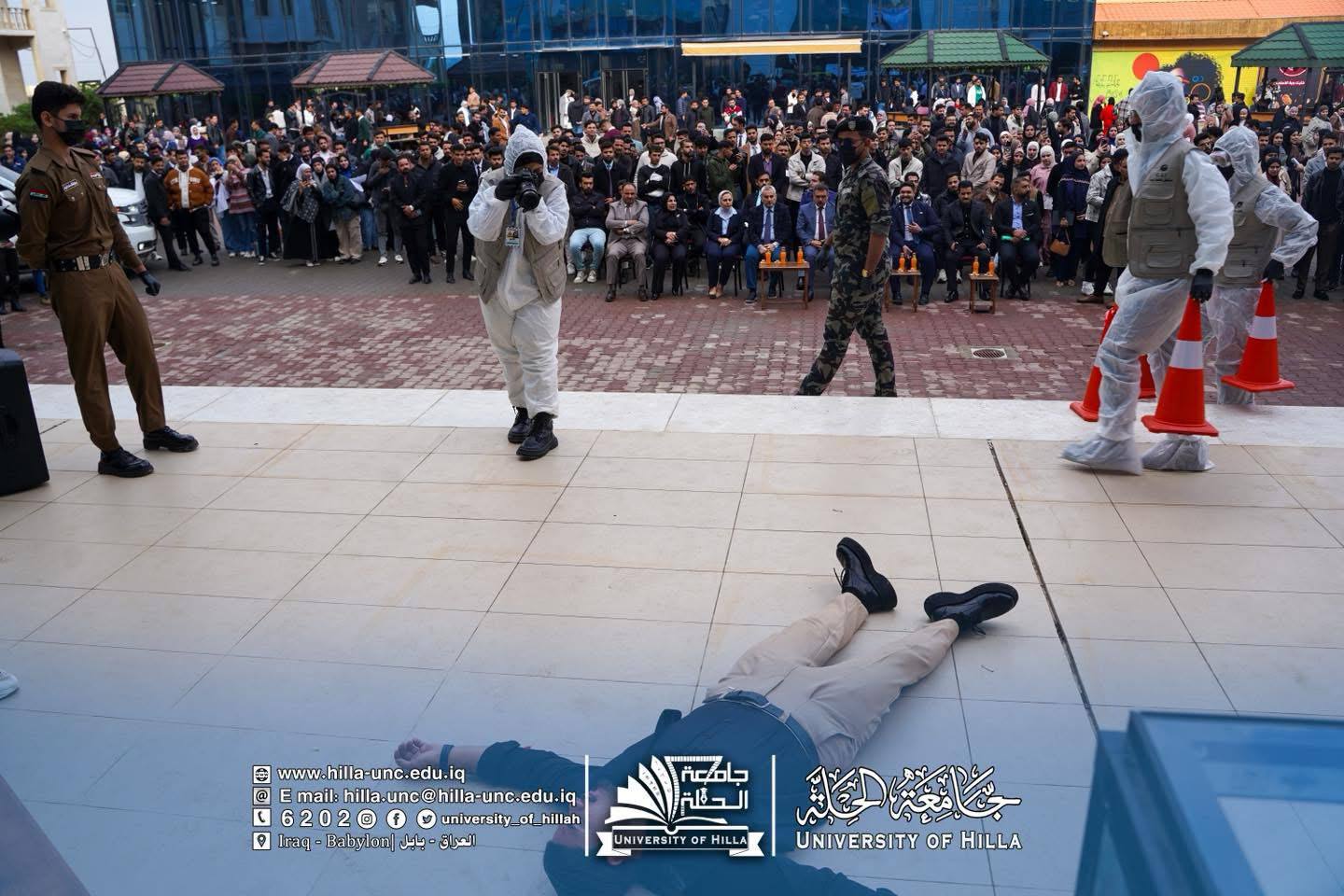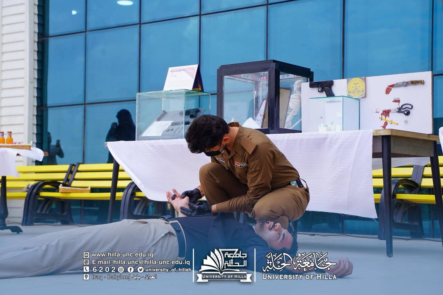 برعاية رئيس جامعة الحلة الأستاذ الدكتور عقيل السعدي المحترم، وبإشراف عميد كلية العلوم الأستاذ الدكتور أسعد صباح المحترم، ورئيس قسم الأدلة الجنائية المدرس الدكتور رقية يحيى عبد الشهيد المحترمة، وبمتابعة مدير مركز التعليم المستمر المدرس الدكتور عدنان الراجحي المحترم، أقام قسم الأدلة الجنائية في جامعة الحلة عرضًا تدريبيًا محاكيًا للواقع تمثل بـ مسرح جريمة افتراضي لحوادث القتل في الأماكن المفتوحة.