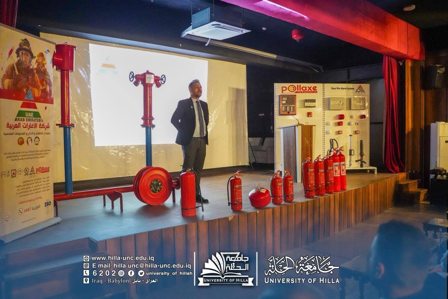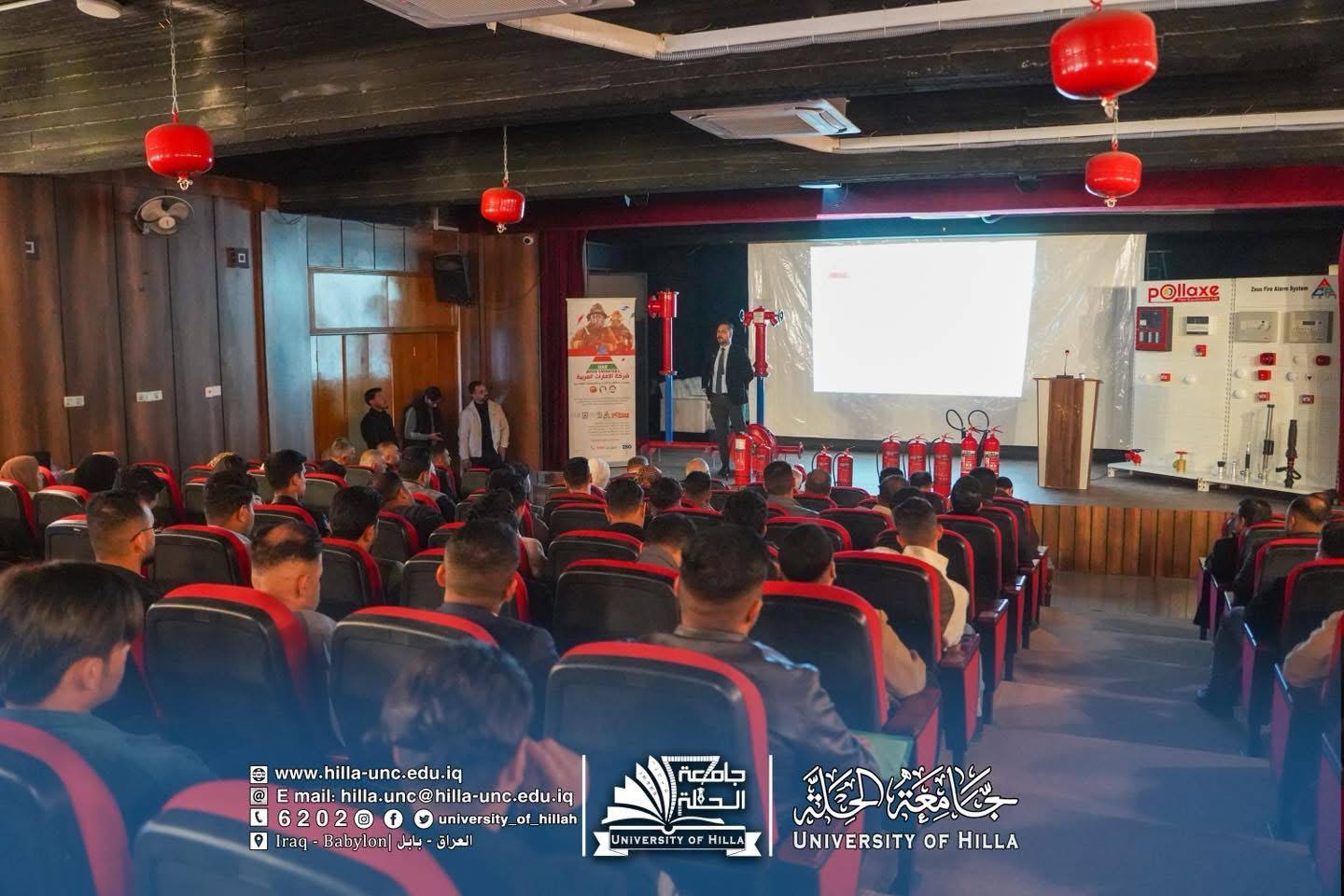 برعاية السيد رئيس جامعة الحلة الأستاذ الدكتور عقيل السعدي المحترم، وبإشراف عميد كلية التقنيات الهندسية الأستاذ الدكتور هارون عبد الكاظم المحترم، ومتابعة مدير مركز التعليم المستمر المدرس الدكتور عدنان عباس الراجحي، وبحضور مساعد رئيس الجامعة للشؤون العلمية الأستاذ المساعد الدكتور عماد سلام عبود، أقامت كلية التقنيات الهندسية ورشة علمية متخصصة بعنوان “منظومات الإنذار المبكر للحرائق ومنظومات الإطفاء”.