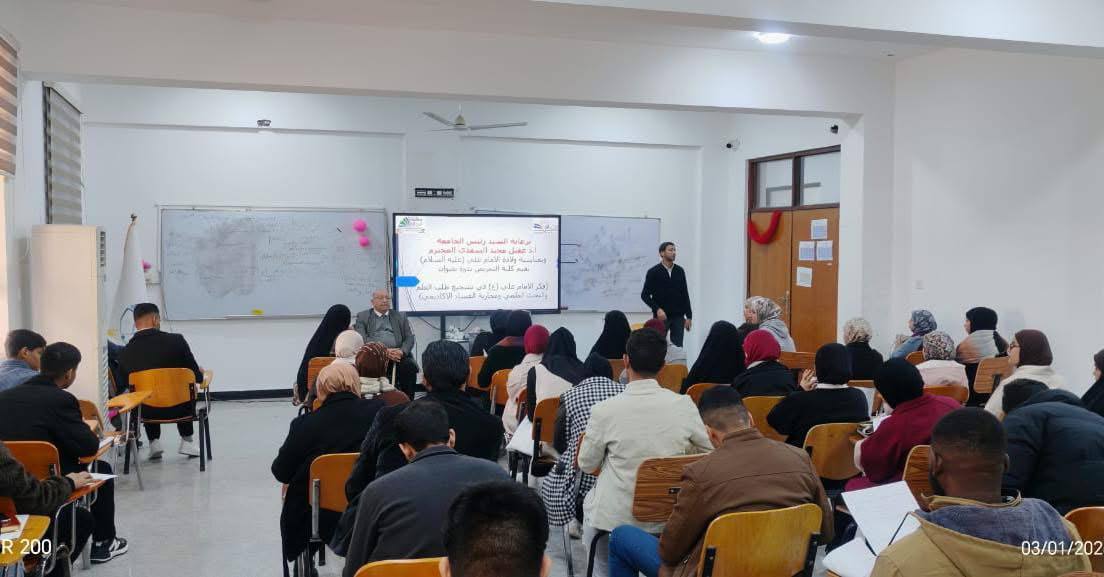 وتناول الدكتور بيعي في محاضرته ما ورد عن الإمام علي (عليه السلام) من وصايا تحث على طلب العلم والابتعاد عن الجهل والفساد، مؤكداً أن استلهام فكر الإمام يمثل منطلقاً لتعزيز بيئة أكاديمية قائمة على الإخلاص والشفافية والسعي نحو التطور العلمي الرصين.