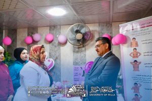 وجاءت هذه المشاركة بإعداد من قبل أ.م.د. هدى شوقي المعاون العلمي، وبدعم من د. شذى علي أحمد مسؤولة شعبة شؤون المرأة في جامعة الحلة، ضمن ملتقى نون، حيث تم إنشاء عيادة للفحص الذاتي للثدي تحت شعار “افحصي وطمّنينا”، بهدف الكشف المبكر عن الحالات المحتملة للإصابة بين منتسبات وطالبات الجامعة المعرضات للخطر.