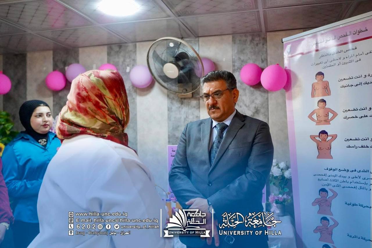 وجاءت هذه المشاركة بإعداد من قبل أ.م.د. هدى شوقي المعاون العلمي، وبدعم من د. شذى علي أحمد مسؤولة شعبة شؤون المرأة في جامعة الحلة، ضمن ملتقى نون، حيث تم إنشاء عيادة للفحص الذاتي للثدي تحت شعار “افحصي وطمّنينا”، بهدف الكشف المبكر عن الحالات المحتملة للإصابة بين منتسبات وطالبات الجامعة المعرضات للخطر.