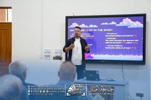 برعاية السيد رئيس جامعة الحلة الأستاذ الدكتور عقيل السعدي، وبإشراف عميد كلية العلوم الأستاذ الدكتور أسعد صباح هادي، ورئيس قسم هندسة تكنولوجيا الأمن السيبراني الدكتور حيدر كريم، أُقيمت يوم السبت الموافق 18/10/2025 ورشة علمية بعنوان “الذكاء الاصطناعي والألعاب”، قدّمها الطالب محمد حيدر من قسم الذكاء الاصطناعي، وذلك على قاعة (24) في بناية عشتار.