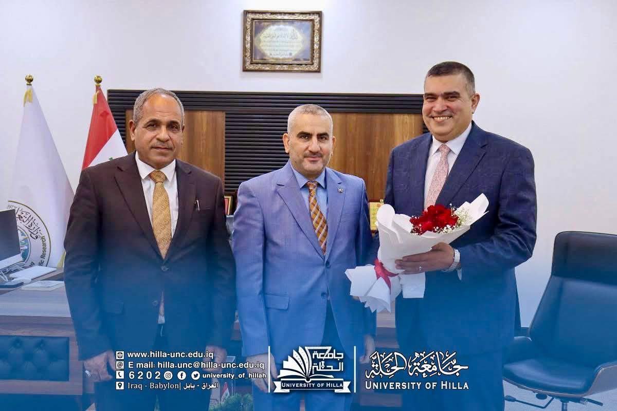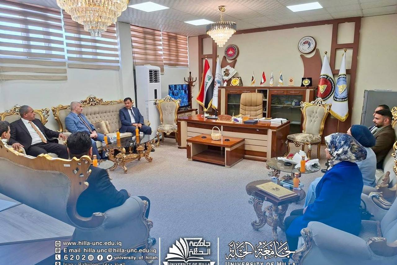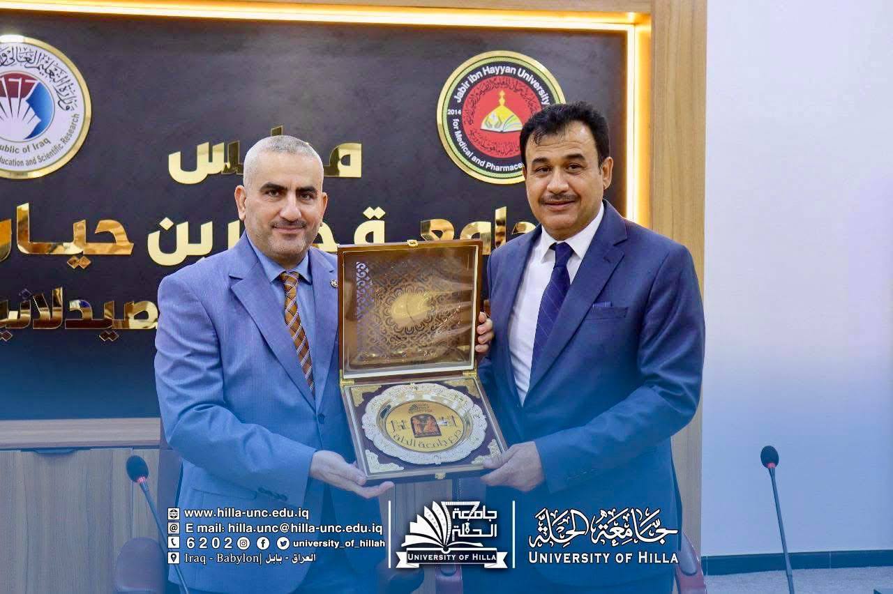 زار وفدًا من جامعة الحلة برئاسة عميد كلية العلوم، الأستاذ الدكتور أسعد صباح الى جامعة جامعة جابر بن حيان وكان في استقبالهم رئيس الجامعة الأستاذ الدكتور علي إسماعيل عبد الله،