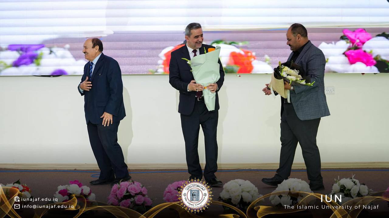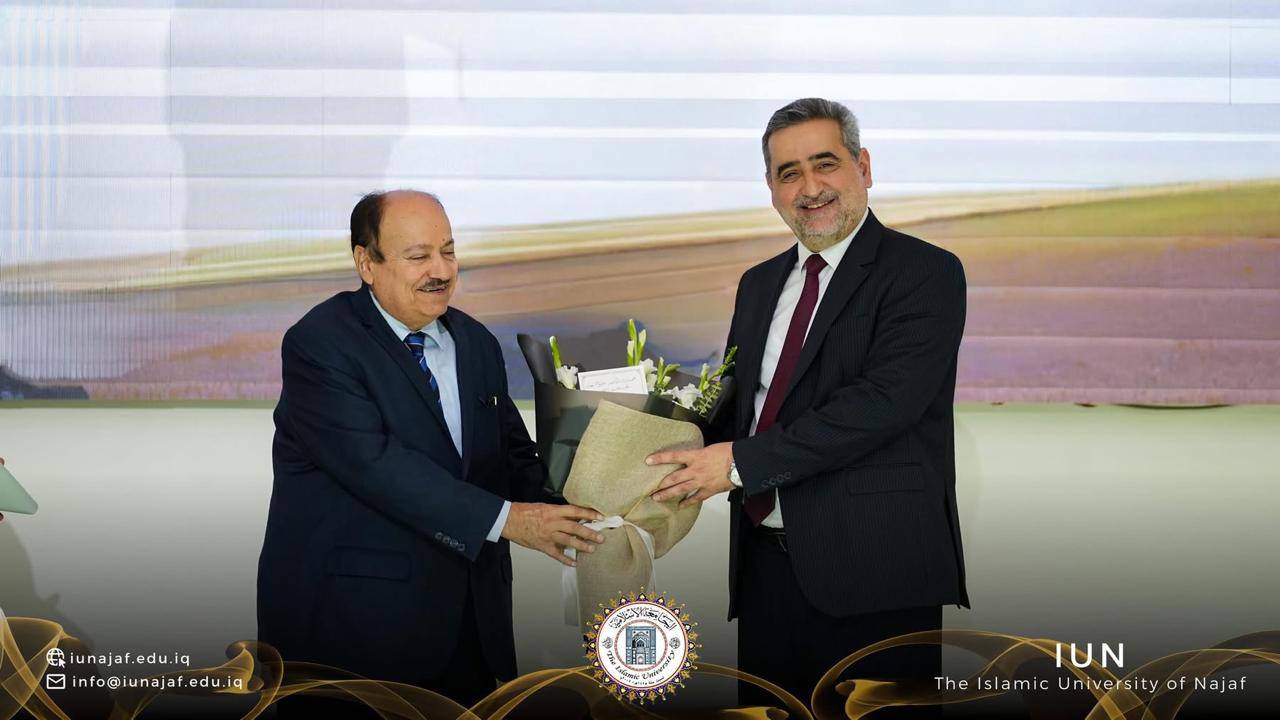 وخلال الاحتفالية، أثنى السيد رئيس الجامعة الإسلامية الأستاذ الدكتور عمار عبدالأمير السلامي على الأستاذ الدكتور عبد العظيم