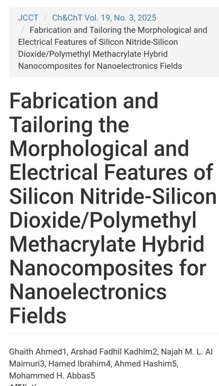 جاء البحث بعنوان:“إنشاء أغشية PMMA معززة بجسيمات نانوية (SiO2-Si3N4) باستخدام عملية الصب”