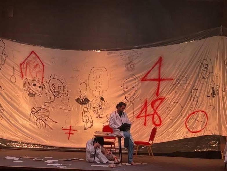 ضمن فعاليات مهرجان المسرح الجامعي الذي تحتضنه جامعة الكتاب في كركوك، شارك قسم الفنون المسرحية بكلية الفنون الجميلة – جامعة الحلة بمسرحية “4.48”، وهي نص للكاتبة البريطانية سارة كين، أخرجه الطالب حيدر رحيم، بمشاركة تمثيلية لكل من دلال علي وحيدر رحيم.